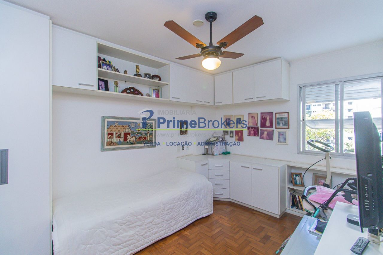 Vista permanente, sacada, piso de madeira, 3 dormitórios (1 suíte), dependência de funcionário, água quente