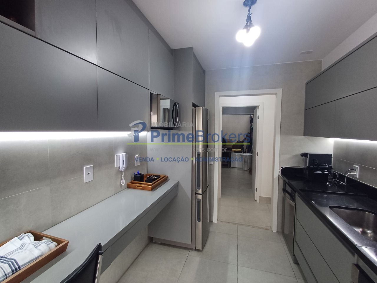 Apartamento: 149 m². São 3 suítes, 1 lavabo e 1 banheiro de empregada. 2 vagas de carros. Sacada gourmet envidraçada (Easy Prime), com persianas automatizadas nas janelas dos quartos, porta que dá acesso com porta de vidro de correr, separando a sala da sacada. Está com piso em porcelanato de PortoBelo de 1ª linha em todos os cômodos, cozinha com armários embutidos da Todeschini, forno elétrico e cocktop. Box com vidros Cristal em 3 banheiros principais até em cima, com chuveiros Deca nos 4 banheiros. Aquecedor central a Gás da Rinnai pressurizado. Cabeamento para internet em todos os quartos (pronto para ligar). Ar condicionado (LG ThinQ, que pode ser acionado via celular antes de chegar em casa) em todos os cômodos. Depurador interno, com Exaustor auxiliar externo para potencializar a retirada de comida da cozinha. Churrasqueira na sacada com exaustão central do condomínio. Elevador individual por andar, 2 vagas de garagem,
