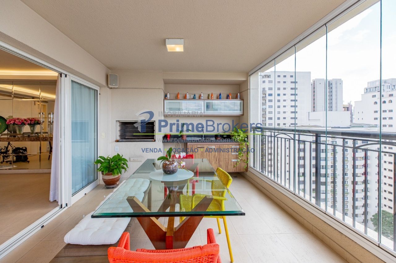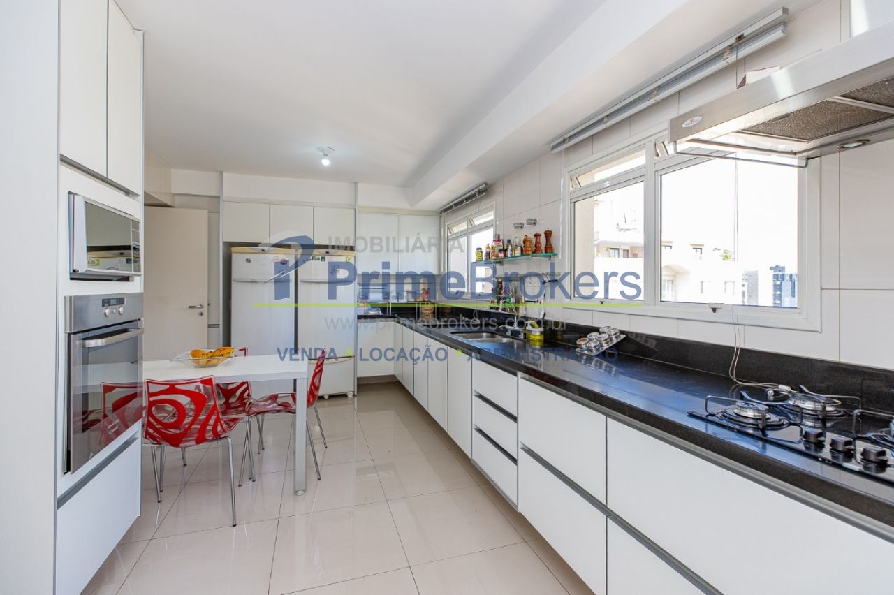 Localizado no exclusivo Condomínio Castelo di Blois, na Av. Jandira em Moema, este apartamento reformado de 172m² com hall privativo é um charme. A sala ampla e iluminada tem 3 ambientes com varanda integrada. O charme está na cozinha, que pode ser integrada à sala através de um biombo de madeira ripada, criando um ambiente moderno e aconchegante. Todos os ambientes têm ar-condicionado e piso de porcelanato, e a cozinha dá acesso direto aos quartos.
