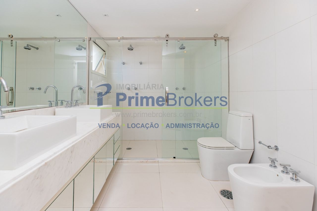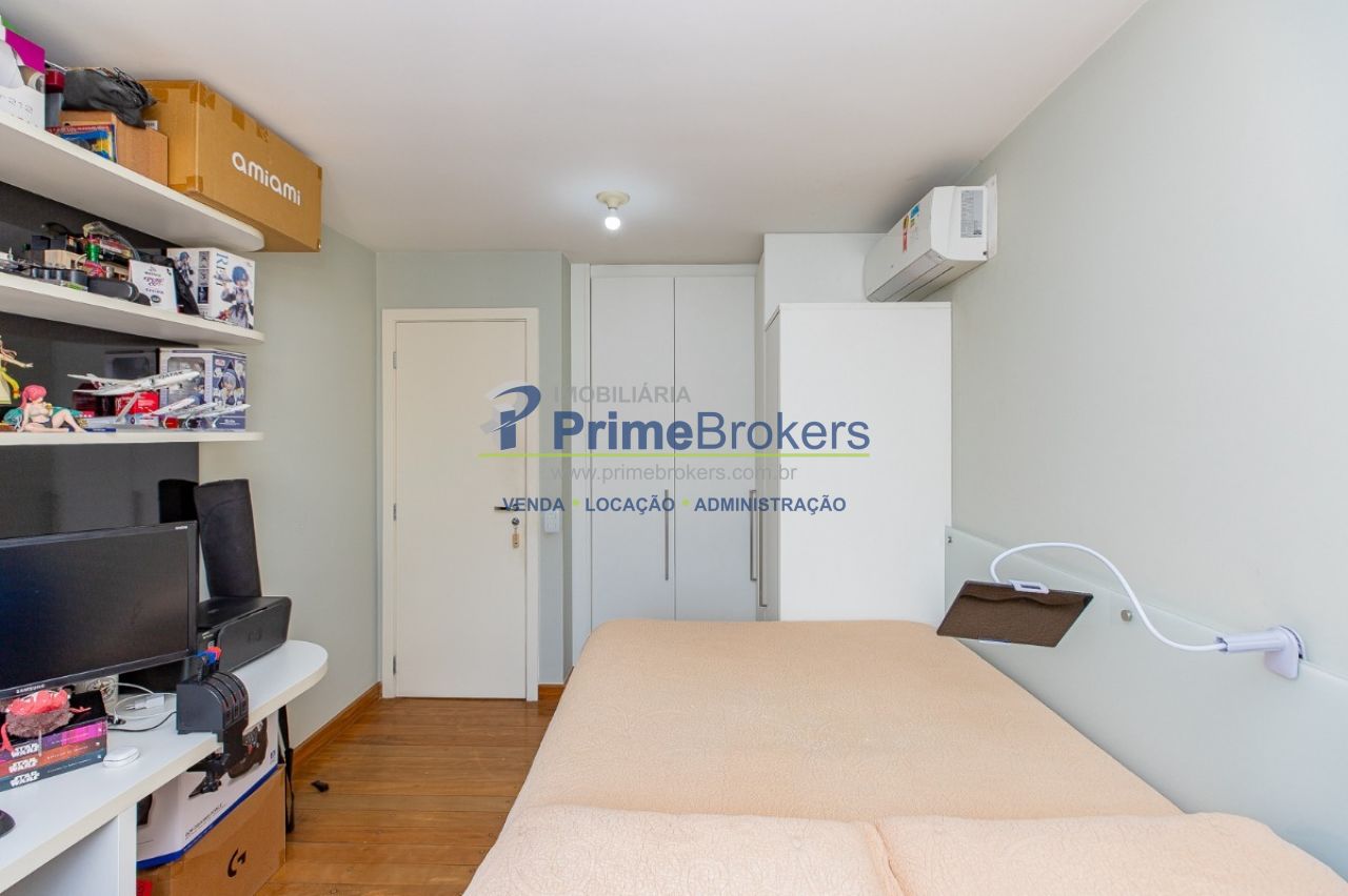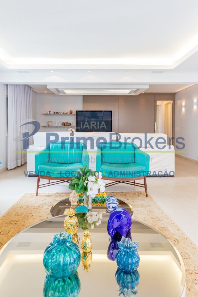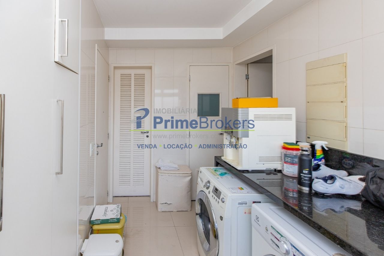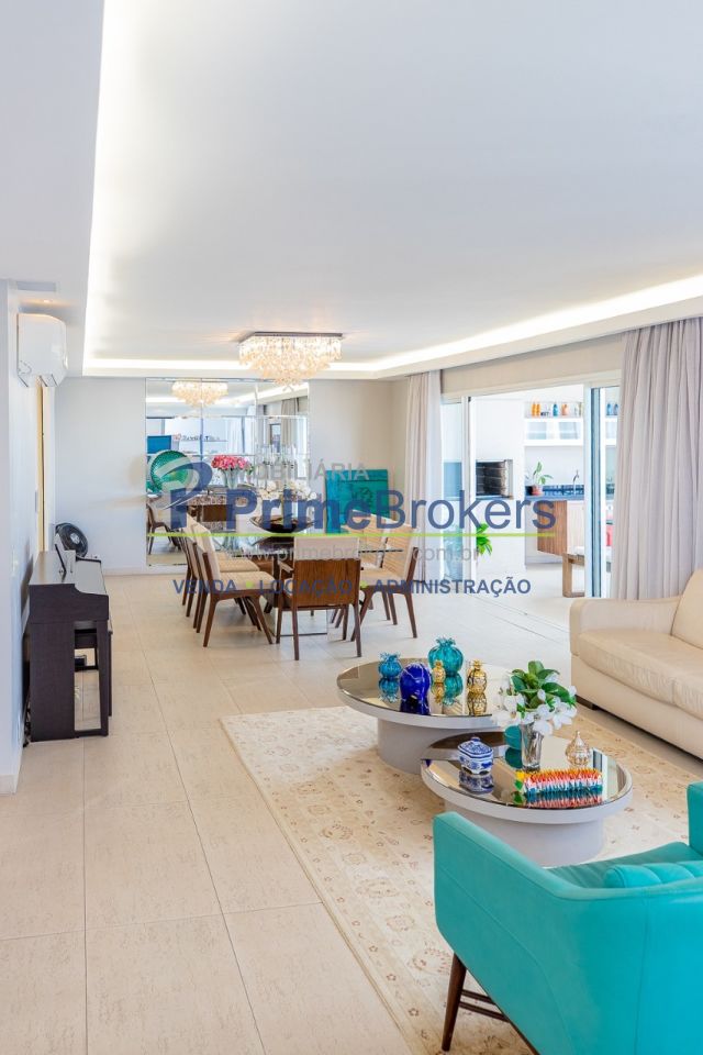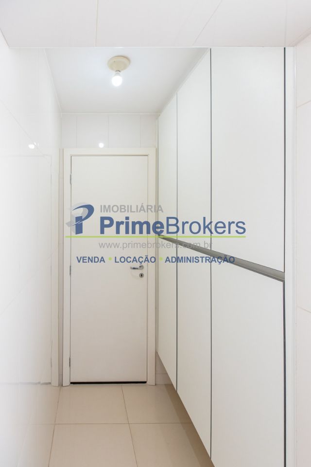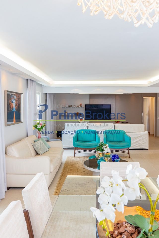 172m² reformado, hall privativo, sala ampla de 3 ambientes com varanda integrada, cozinha com biombo de madeira ripada (integrável), piso de porcelanato, ar-condicionado em todos os ambientes, 3 suítes (principal com closet, banheira e sacada), lavabo, roupeiro/louceiro, área de serviço com quarto e banheiro de funcionários, 3 vagas de garagem