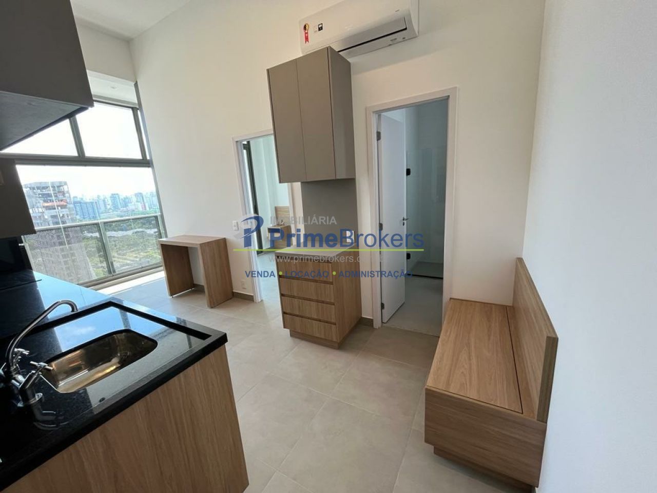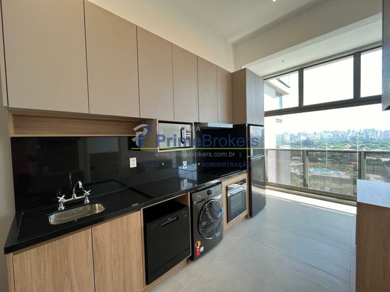 Apartamento novo e moderno no Ibira by You com 1 dormitório, cozinha completa com geladeira, fogão, forno microondas, lava louças e lavadoura de roupas, armários embutidos, ar condicionado, varanda envidraçada e 1 vaga de garagem