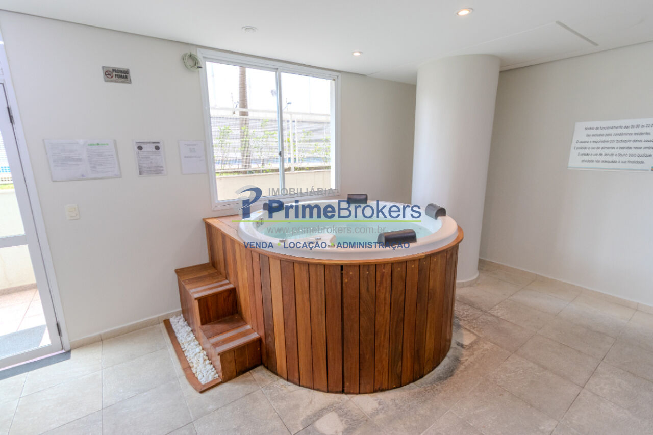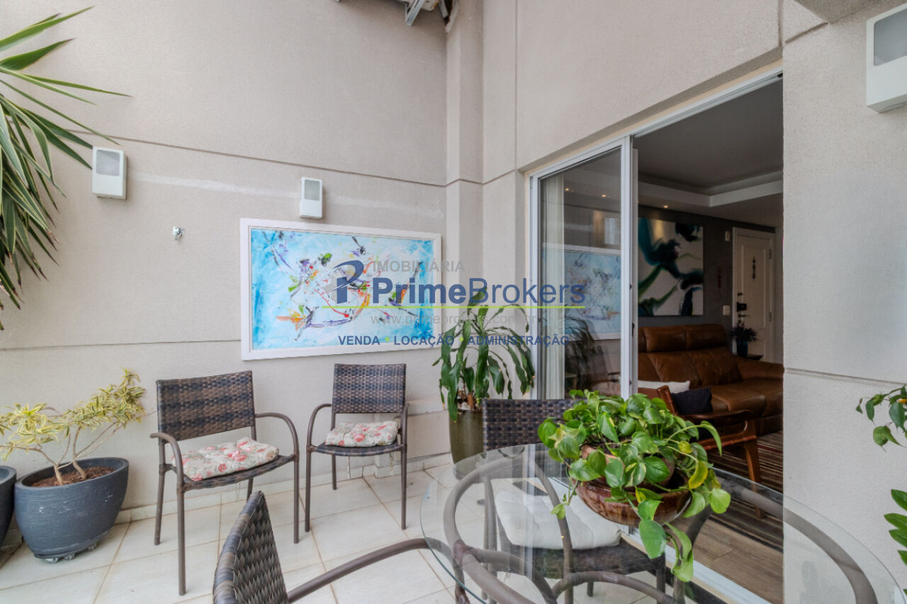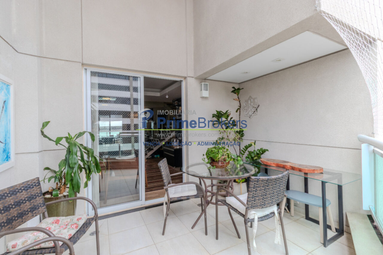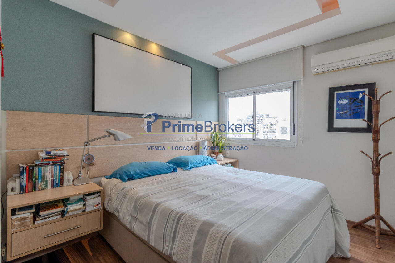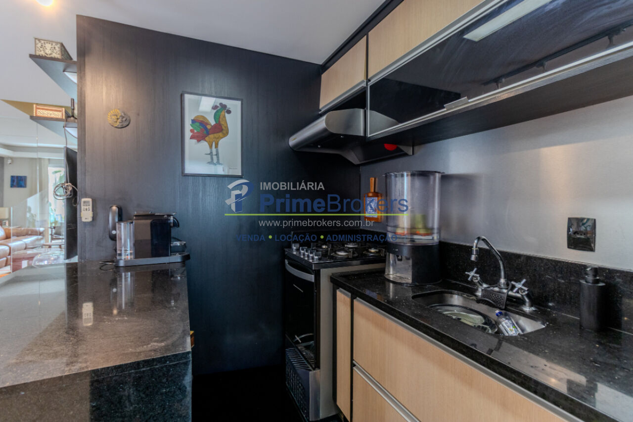 Apartamento com 70m², 2 dormitórios, cozinha integrada, varanda, ar condicionado.