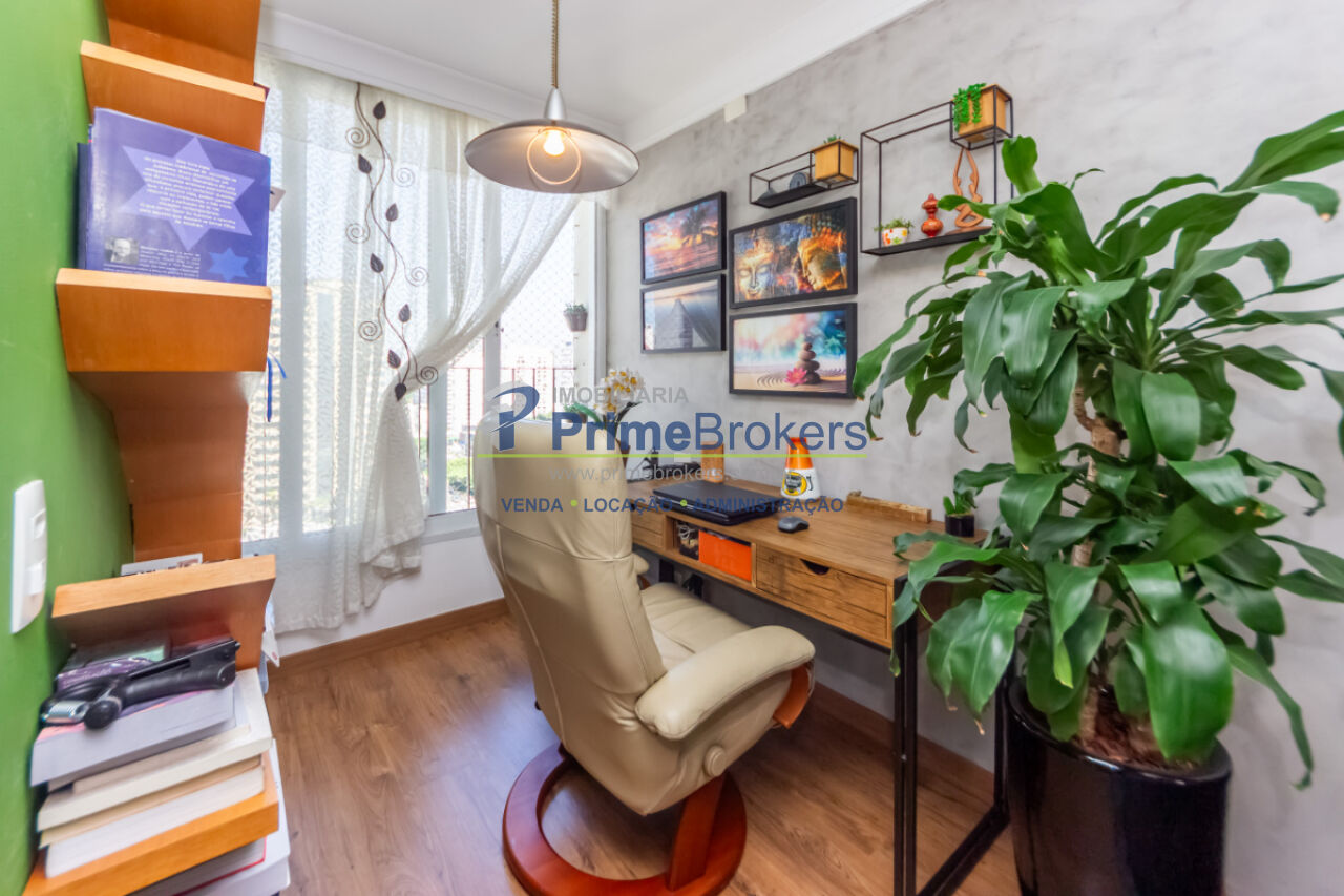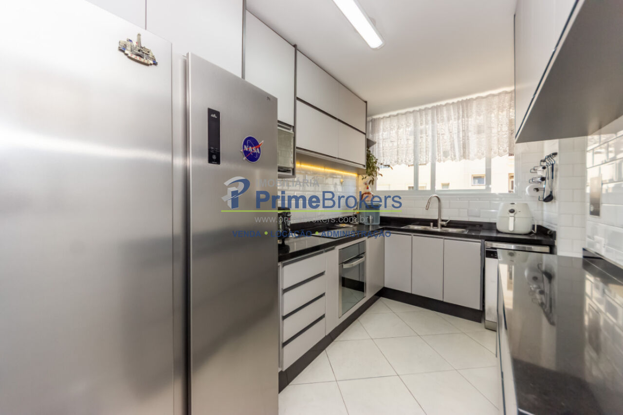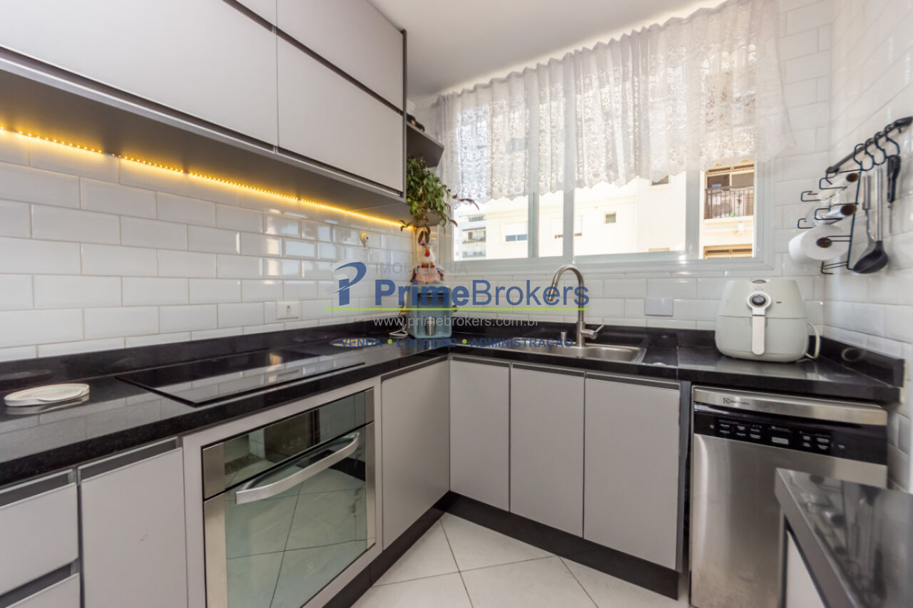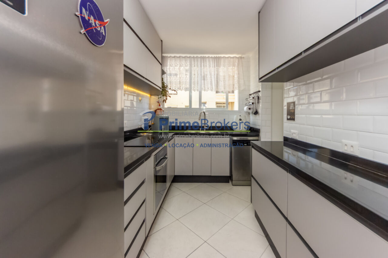 2 dormitórios sendo 1 suíte, antigo quarto de serviço transformado em closet, 1 vaga, sala para dois ambientes, home office, cozinha reformada com marcenaria nova, área de serviço, despensa, interfone, janela teto-chão, móveis planejados, vista para cidade