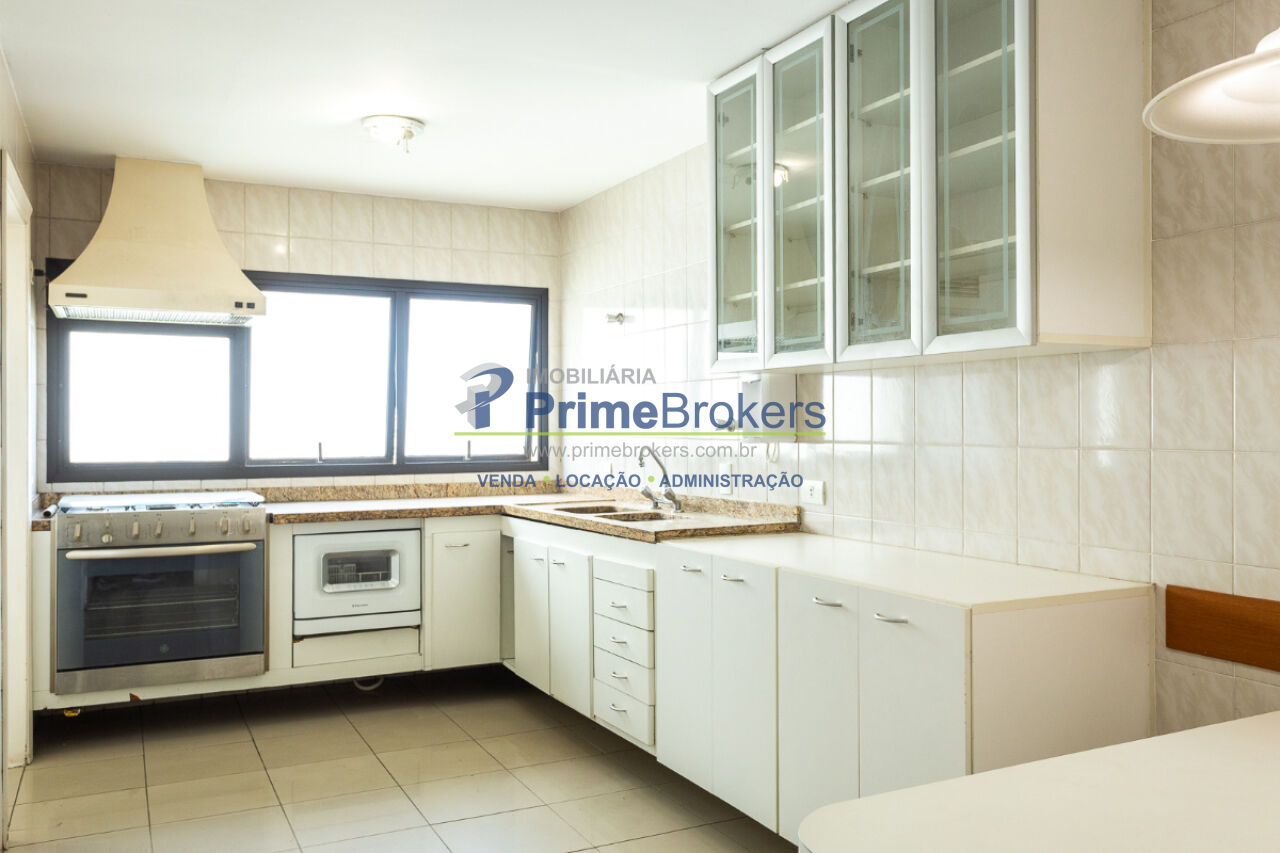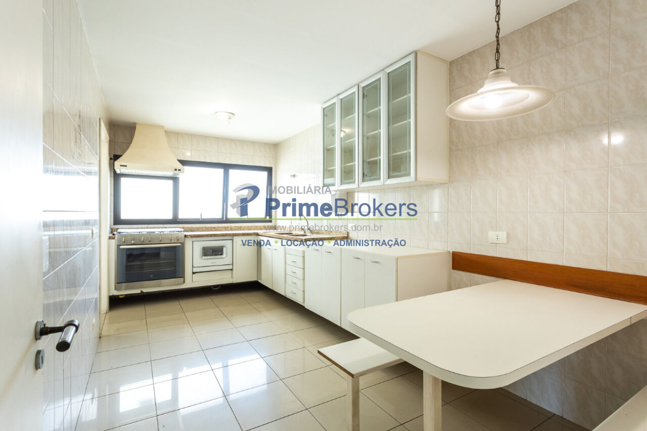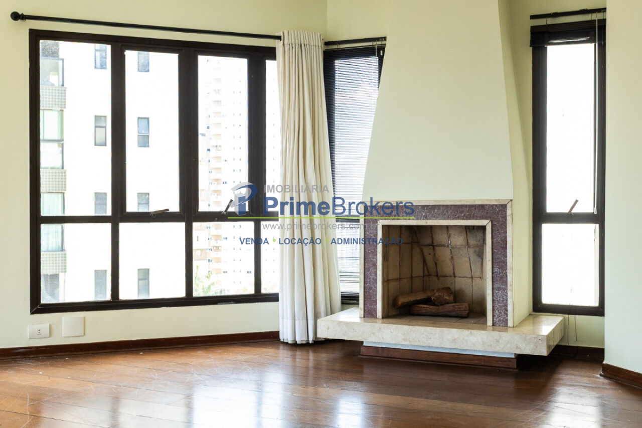 Living para 3 ambientes, com lareira, piso de madeira e varanda envidraçada com vista livre, garantindo excelente iluminação e ventilação natural. São 3 dormitórios, sendo 1 suíte, além de banheiro social e lavabo. Cozinha arejada com armários planejados, despensa e dependência completa de serviço.