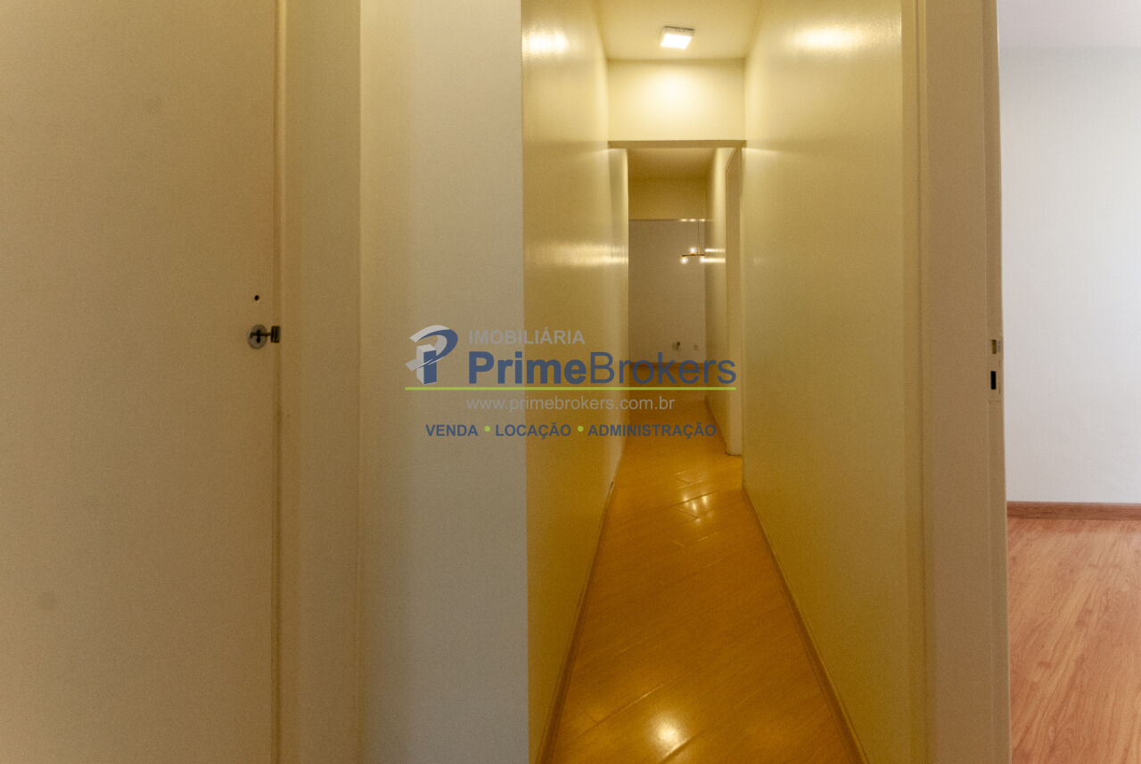 Closet planejado (antigo 3º dormitório), piso de madeira, apartamento de fundo com privacidade e silêncio, sala espaçosa com janelão e ótima iluminação, área de serviço, dependência de funcionária, banheiro de serviço, jardim, gás encanado, água quente, interfone, banheiro com chuveiro elétrico