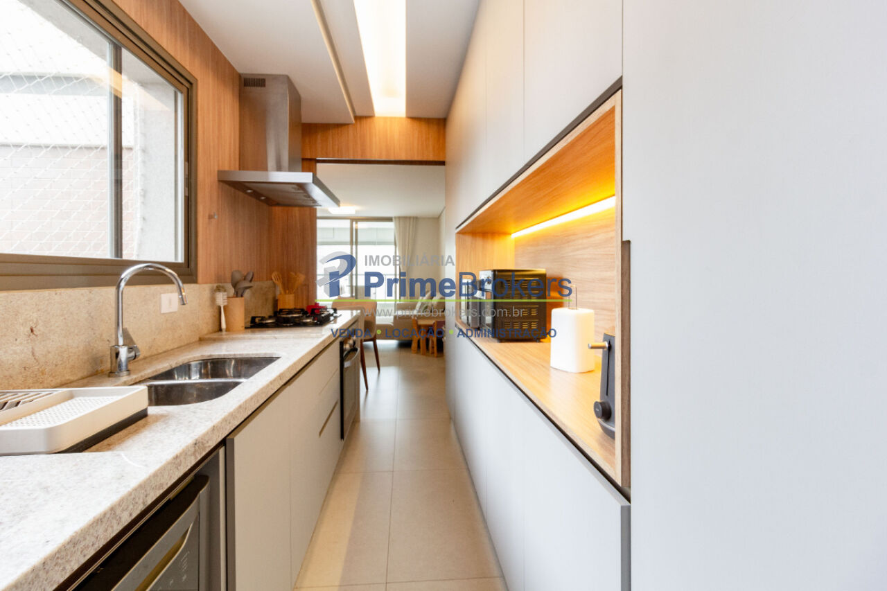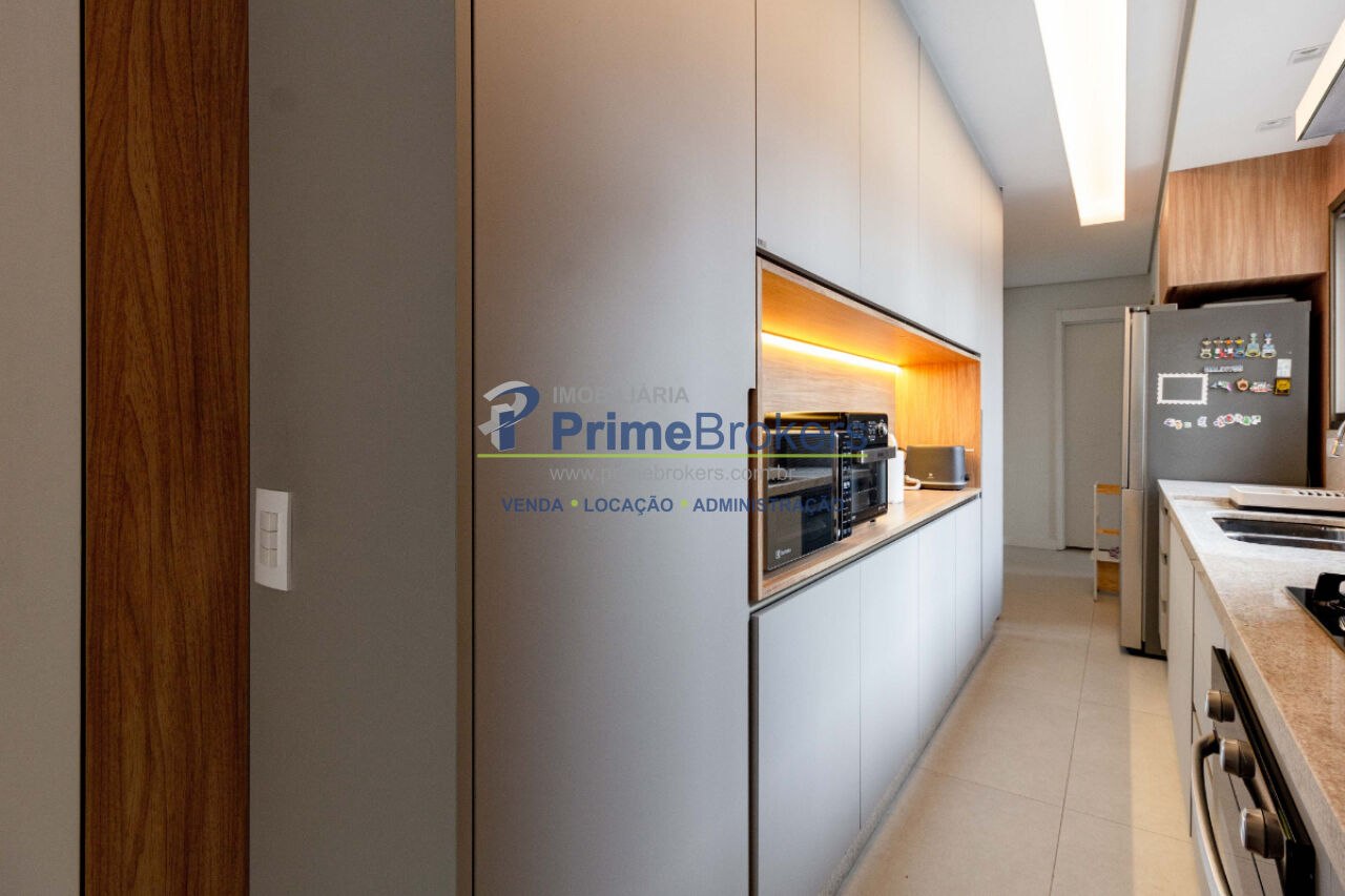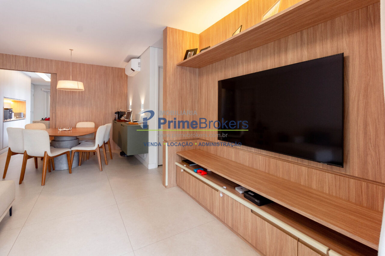 Varanda gourmet com churrasqueira, projeto de interiores, marcenaria sob medida, 2 dormitórios (1 suíte com closet), living dois ambientes com folhado de madeira, home-office, ar-condicionado em todos os ambientes, cooktop 5 bocas, forno, purificador de água