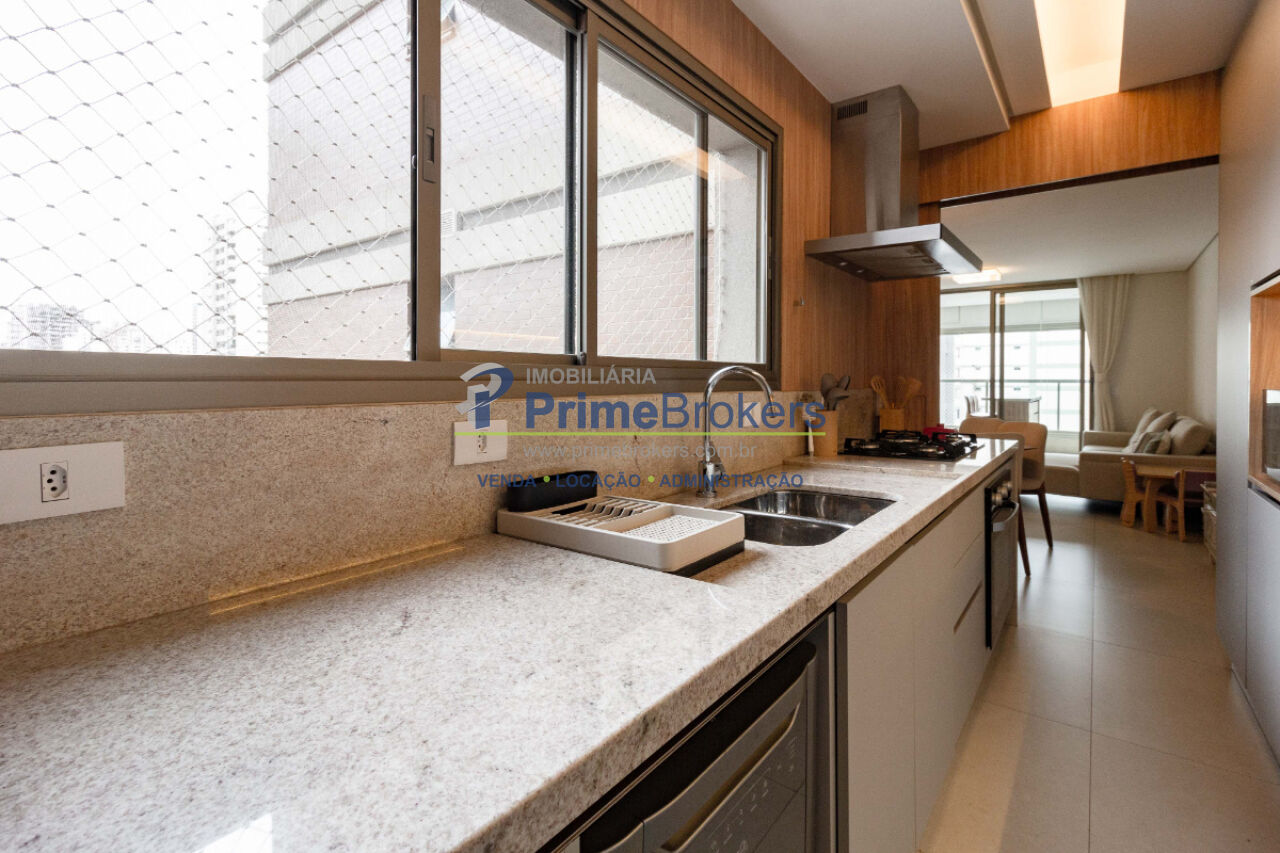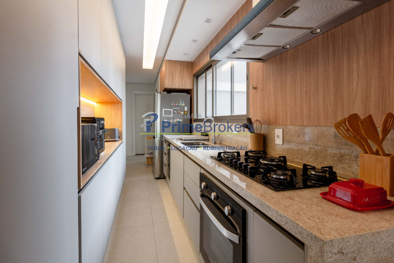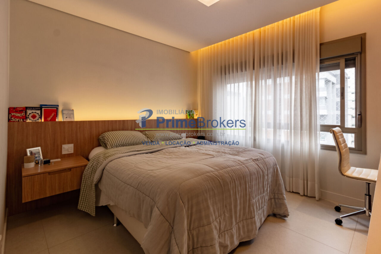 Varanda gourmet com churrasqueira, projeto de interiores, marcenaria sob medida, 2 dormitórios (1 suíte com closet), living dois ambientes com folhado de madeira, home-office, ar-condicionado em todos os ambientes, cooktop 5 bocas, forno, purificador de água