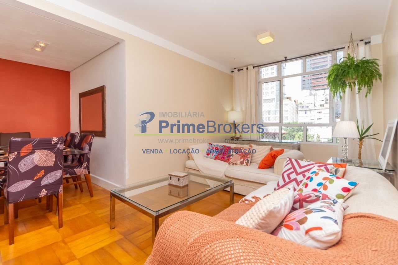 Possui 3 quartos (1 suíte) e 2 banheiros. A sala ampla aproveita a luz natural, tornando o ambiente acolhedor. Prédio de 1973, em andar alto com vista privilegiada, aceita financiamento e FGTS.