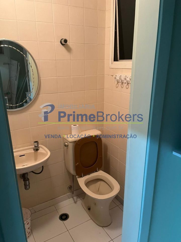 O apartamento é mobiliado e aceita pets, oferecendo sala para TV e lavabo. O condomínio conta com infraestrutura completa, incluindo elevador, portaria 24 horas e salão de festas