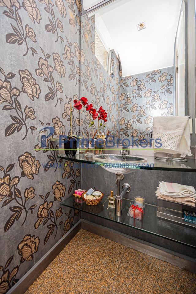 Charmoso já na entrada, esse imóvel de alto padrão, com hall privativo, elegante acabamento com piso de mármore verde Ubatuba.