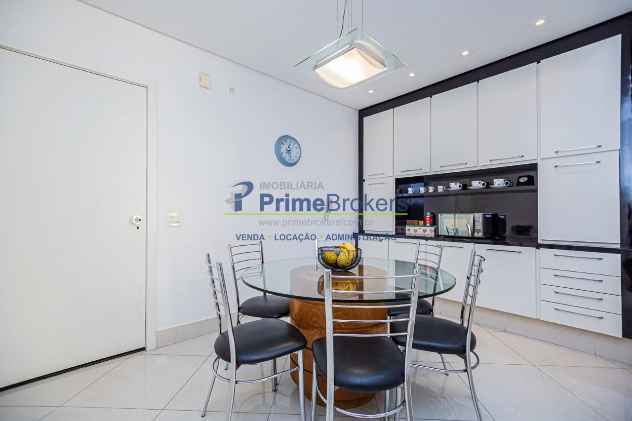 A cozinha é imensa, bastante clara com grandes janelas e muito funcional. A copa tem duas entradas, um ambiente muito agradável, amplo, com pé direito alto, dando vontade de tomar longos cafés da manhã todos os dias da semana. A cozinha está muito bem equipada com coifa, fogão, muitos armários, generosa bancada em granito preto num estilo moderno dividindo o ambiente generoso em espaço e luz.