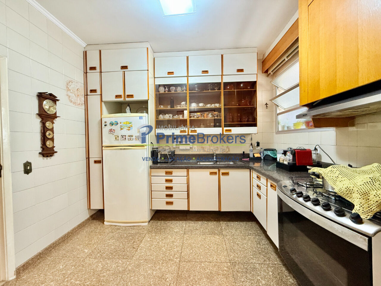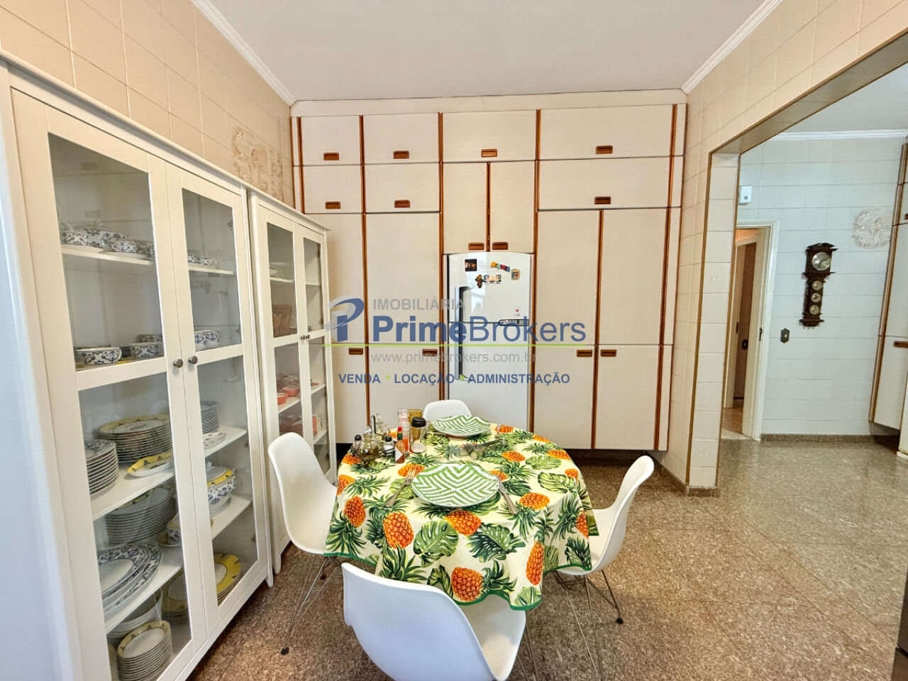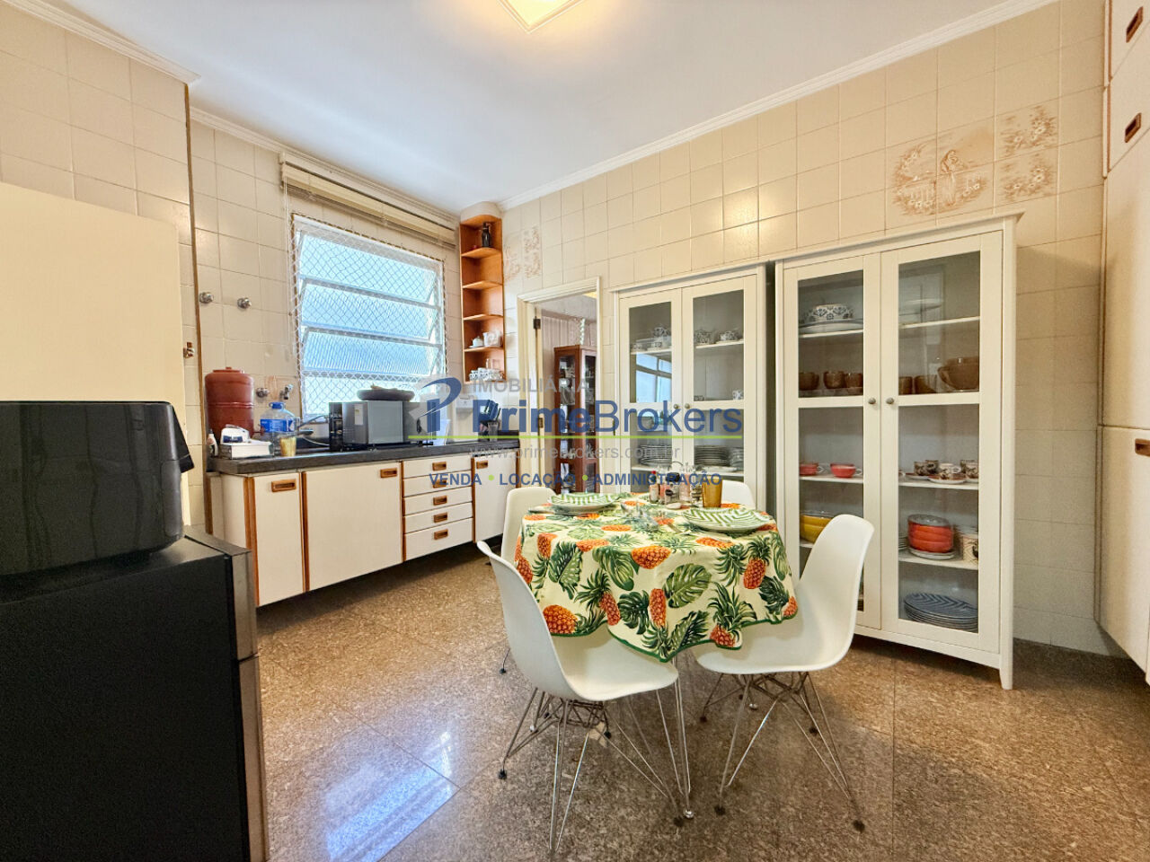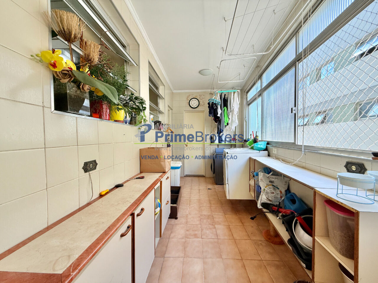 A copa-cozinha é funcional e bem planejada, integrada à área de serviço completa, com quarto e banheiro de apoio, além de despensa.