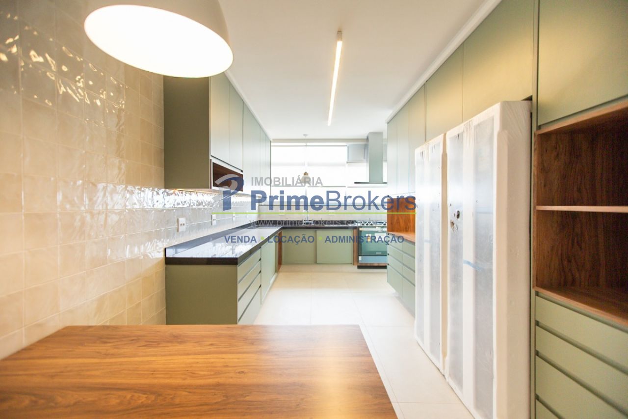 Os acabamentos de alto padrão são notáveis, com piso de madeira e móveis planejados que valorizam cada ambiente.