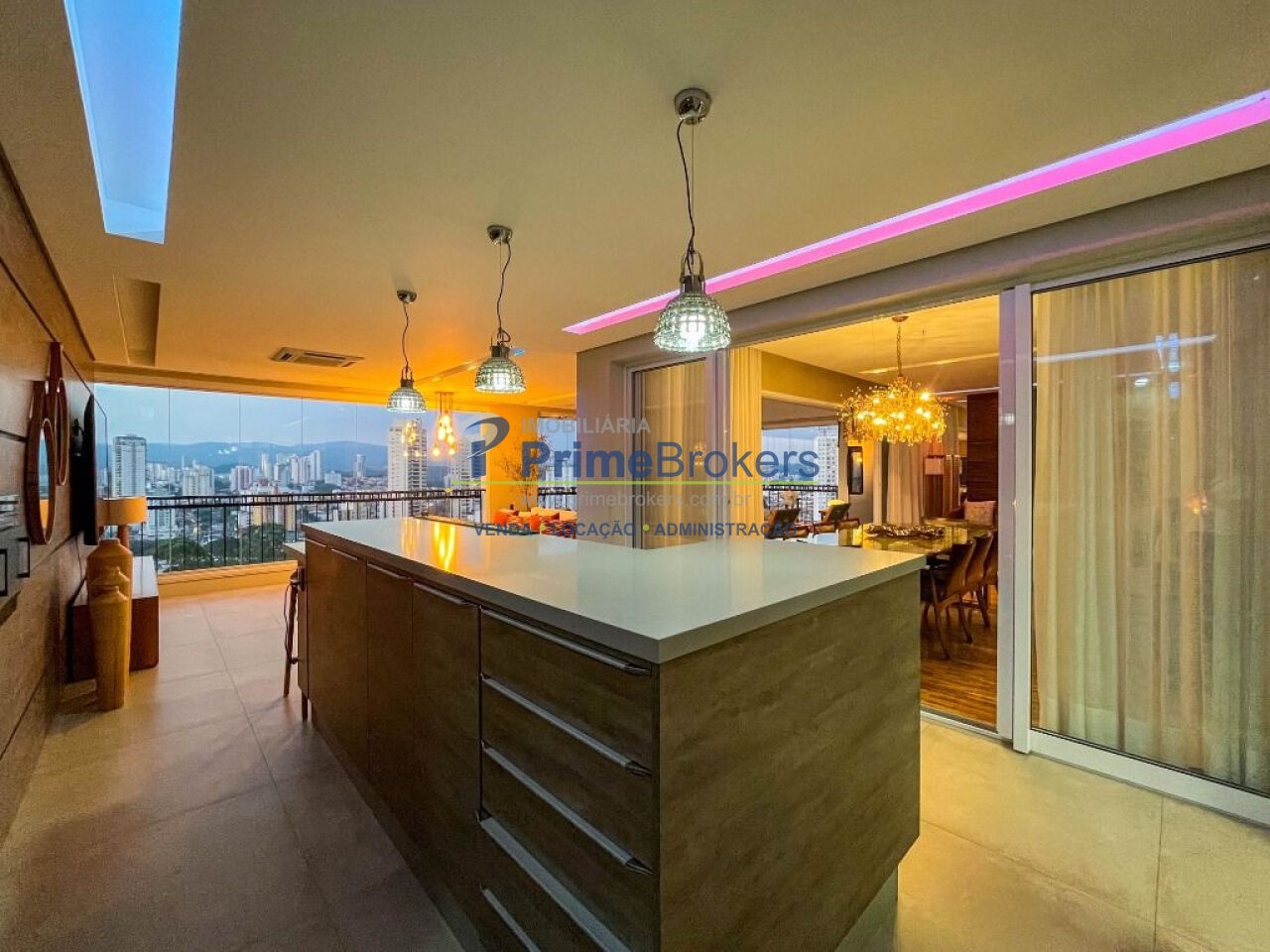 231m², 2 suítes (master com closet e hidro), 3 banheiros, 4 vagas, planta revertida, escritório, cozinha planejada, sala ampla, varanda gourmet com churrasqueira e forno de pizza, ambientes climatizados, área de serviço, dependência completa de empregada, conforto e elegância