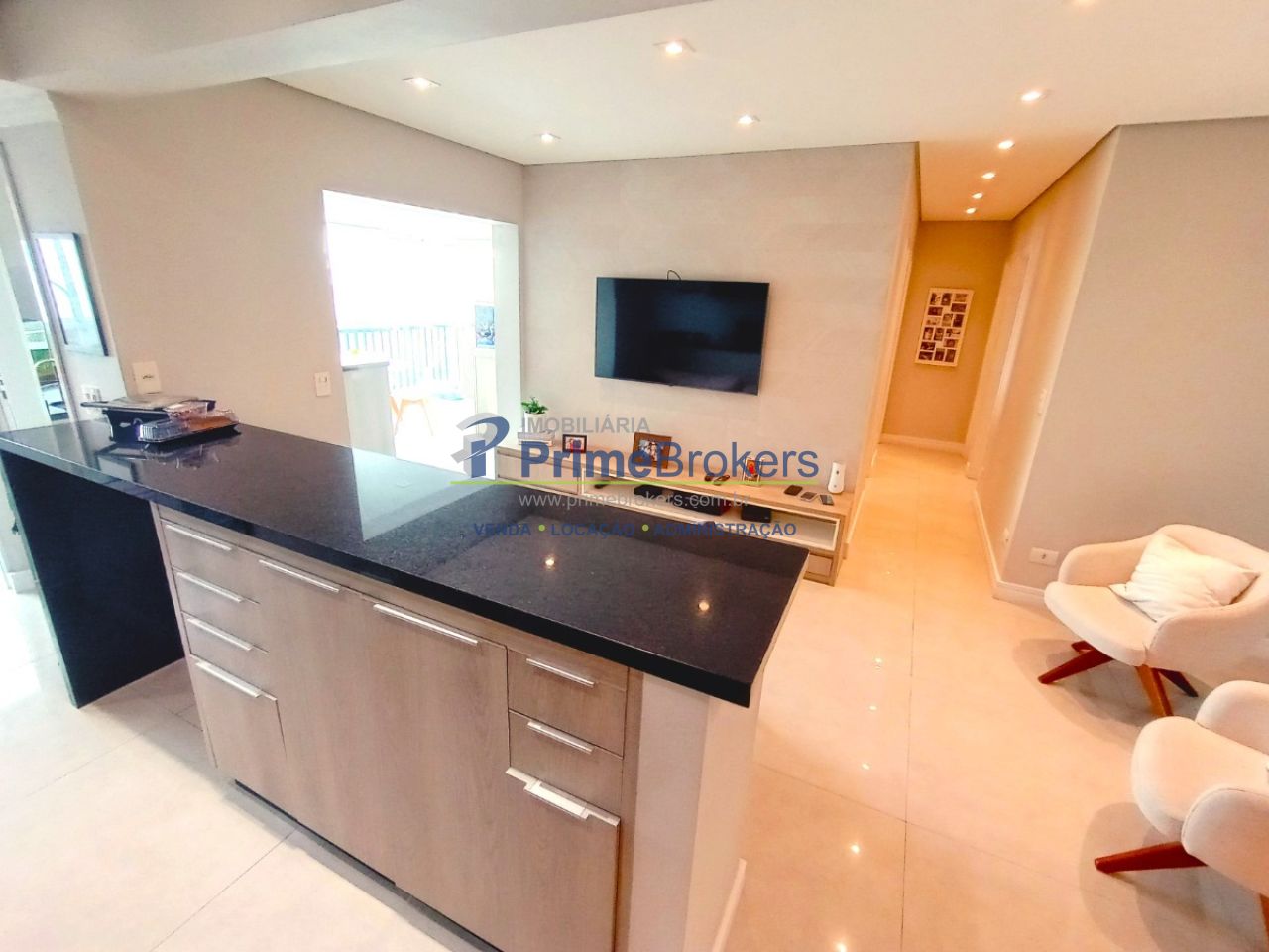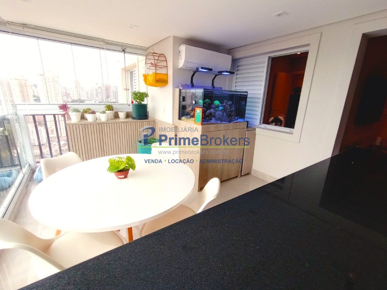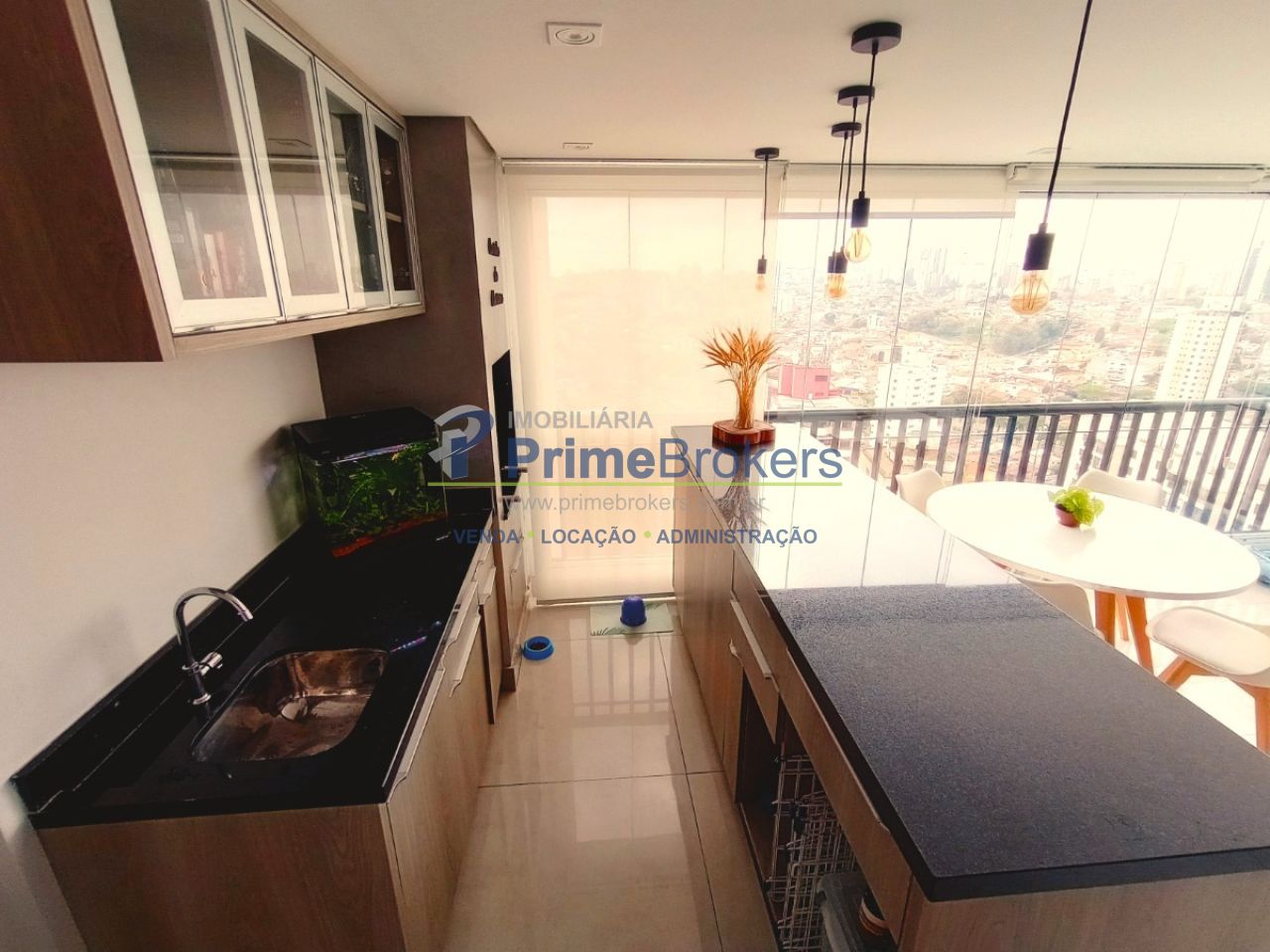 Varanda gourmet com churrasqueira a carvão, sacada envidraçada, mobiliado, móveis planejados, 3 dormitórios (1 suíte), piso porcelanato/laminado, vista permanente, estrutura para ar, lavabo, cozinha integrada