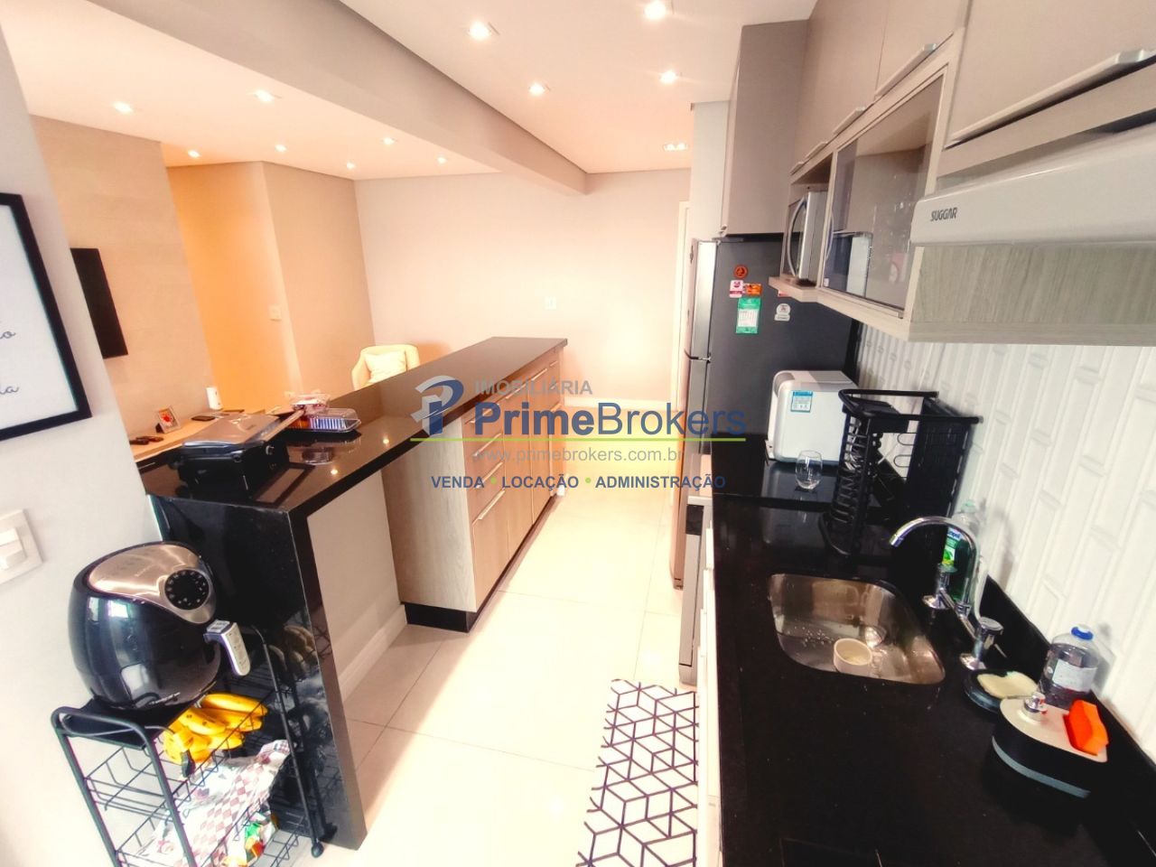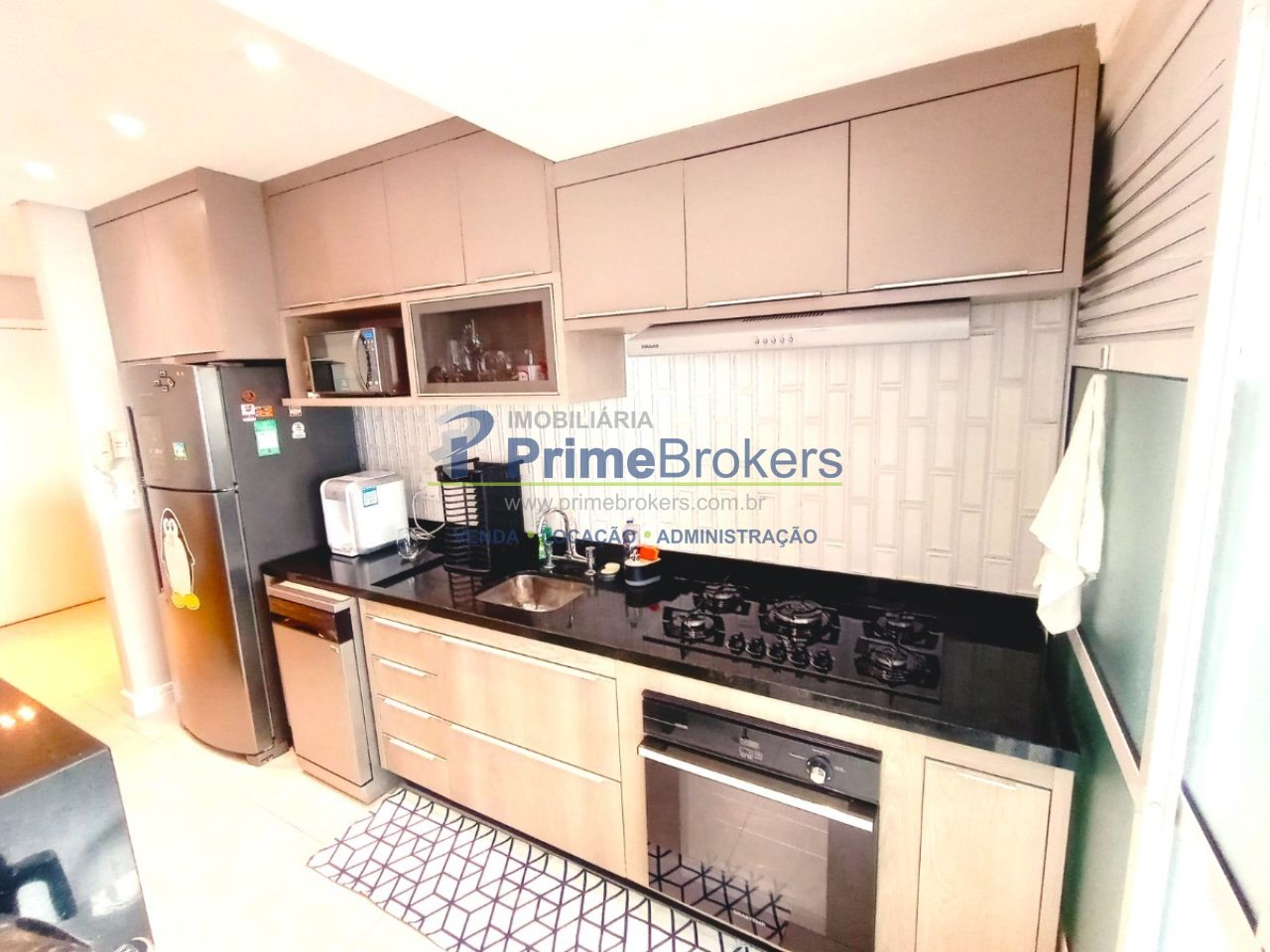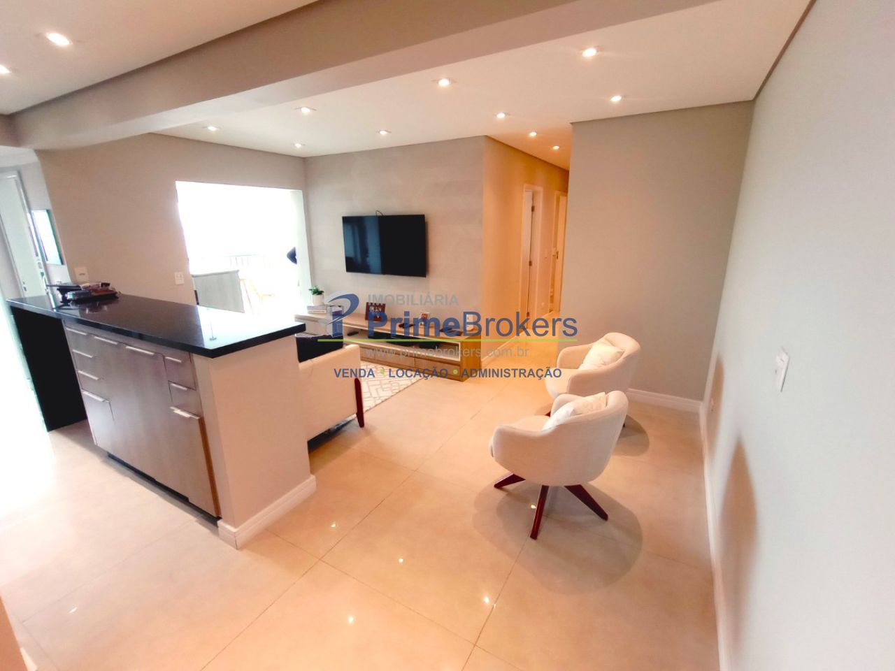 Varanda gourmet com churrasqueira a carvão, sacada envidraçada, mobiliado, móveis planejados, 3 dormitórios (1 suíte), piso porcelanato/laminado, vista permanente, estrutura para ar, lavabo, cozinha integrada