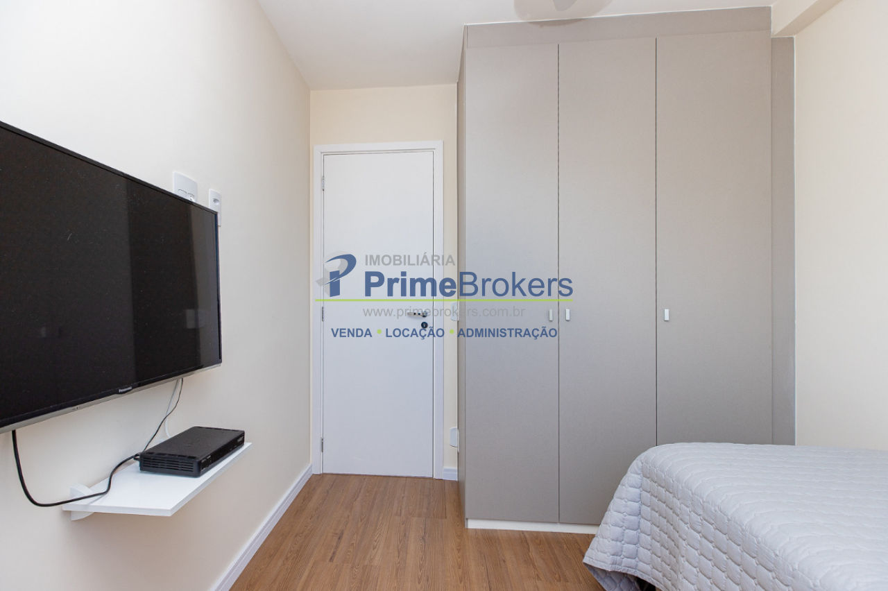 2 dormitórios (1 suíte planejada), 2 banheiros, 2 vagas, varanda envidraçada, móveis planejados, cozinha americana/integrada, infraestrutura para ar-condicionado, piso laminado, sacada, home office, área de serviço, hidromassagem, ofurô, sauna seca, vista para a cidade, alarme, interfone, água quente, gás encanado