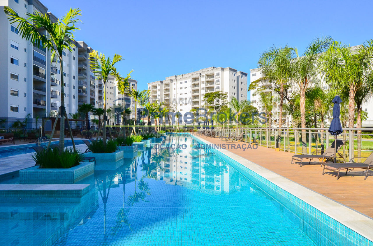 Parque aquático com piscinas, academia/fitness, cinema, coworking, espaço gourmet, bar, salão de festas, quadra de futebol, playground, espaço kids, brinquedoteca, churrasqueira, bicicletário, honest market, portaria e segurança 24h, gerador, acesso PCD