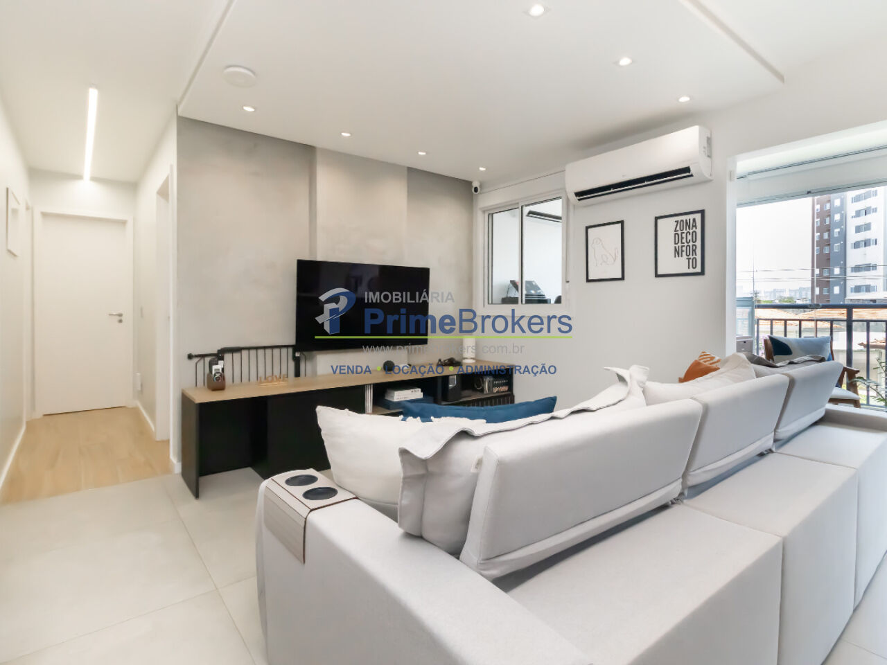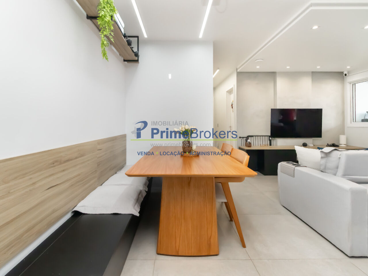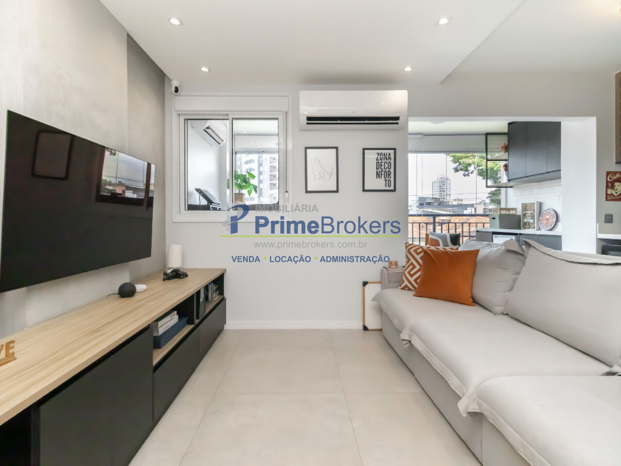 Varanda envidraçada, Sala ampliada e integrada, Cozinha americana com triturador, 4 pontos de ar-condicionado, Lavabo, Piso porcelanato, 2 vagas de garagem