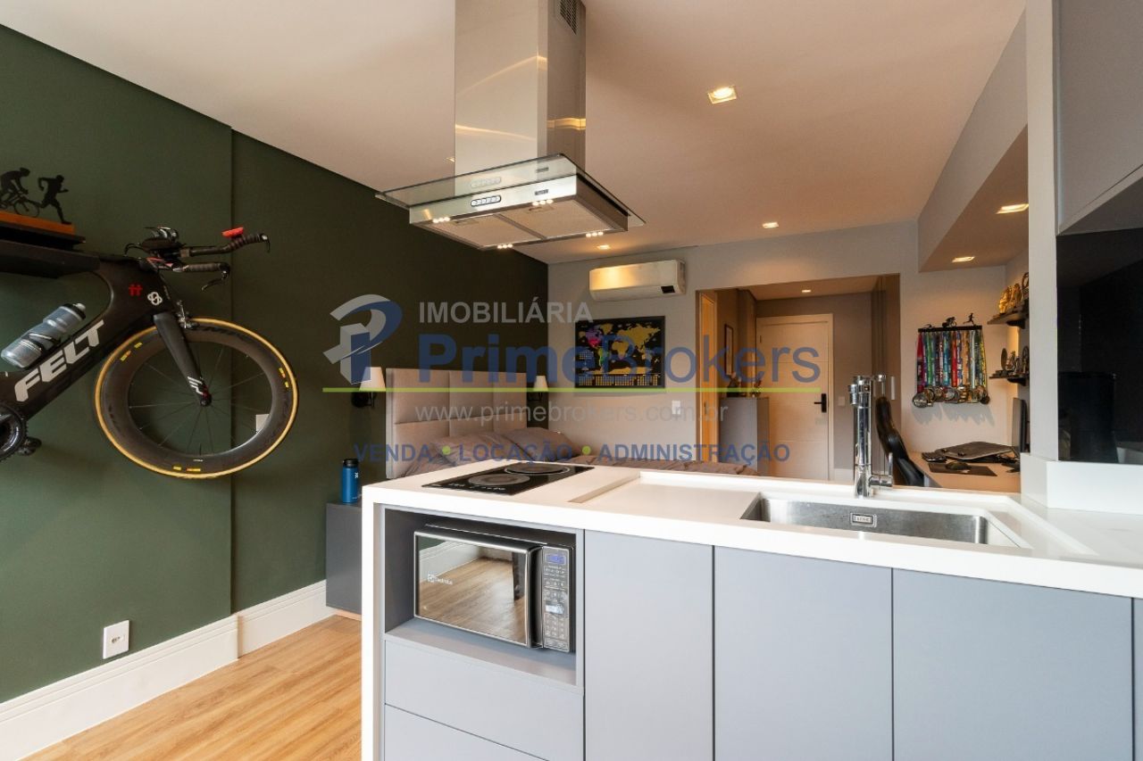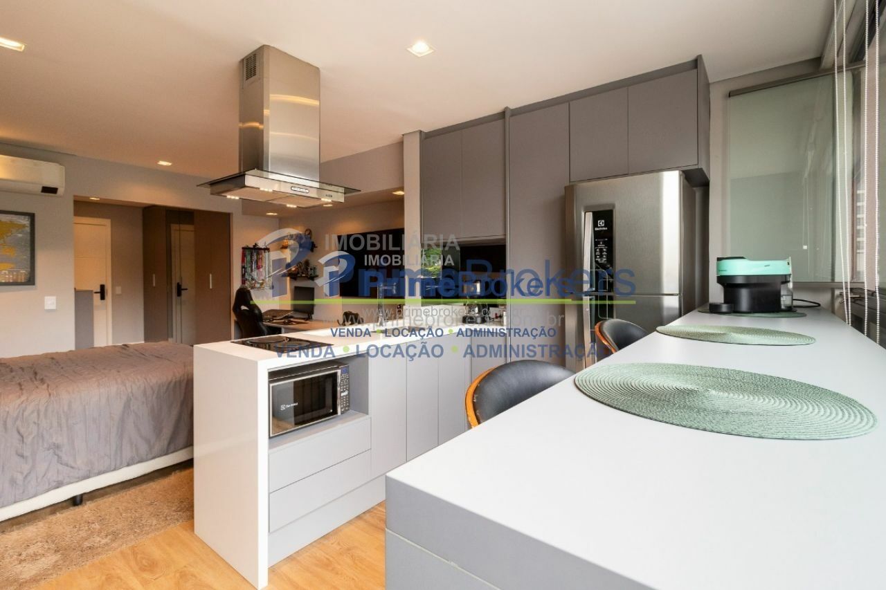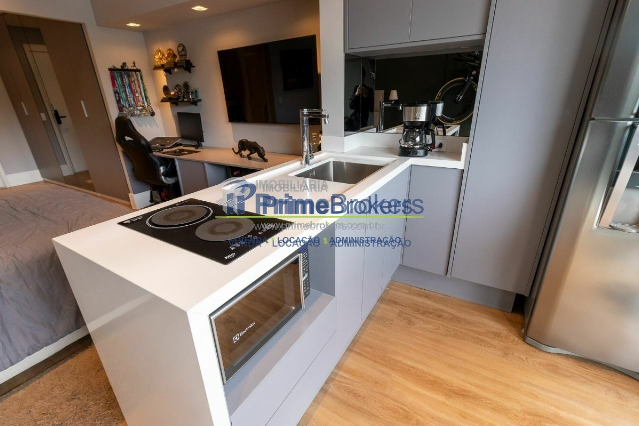 Studio de 33m², localizado no 3º andar. O imóvel possui um quarto, um banheiro, água quente, interfone, janelas do tipo teto-chão, e vem mobiliado com móveis planejados e ar condicionado, proporcionando um ambiente prático e moderno. Não possui vagas de garagem cadastradas.