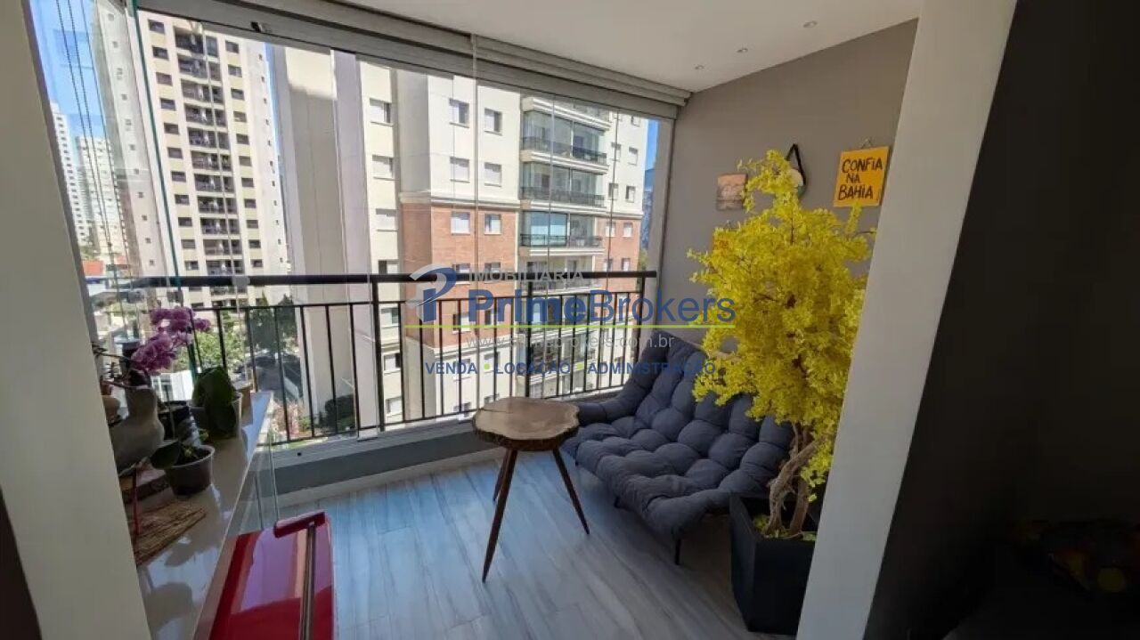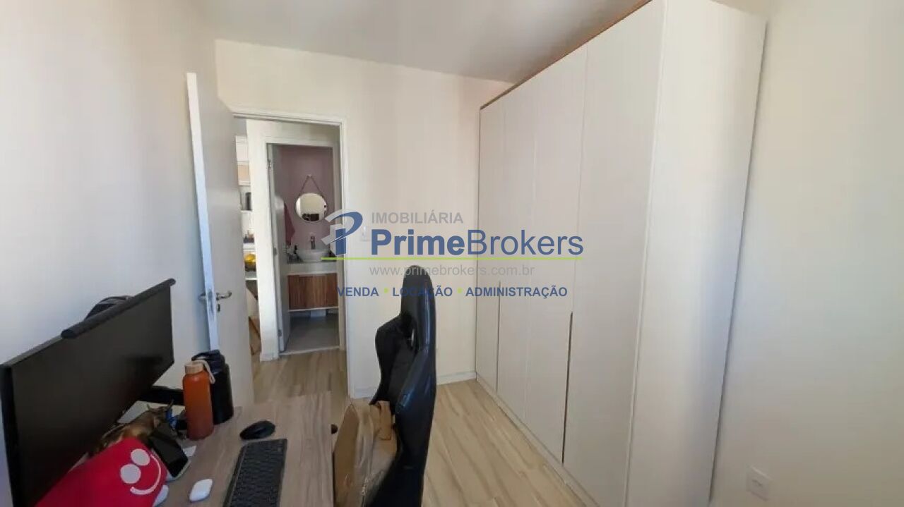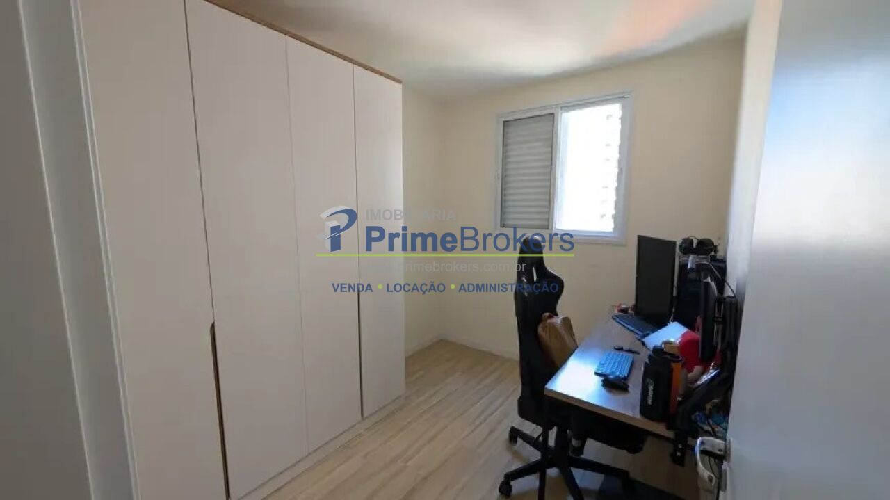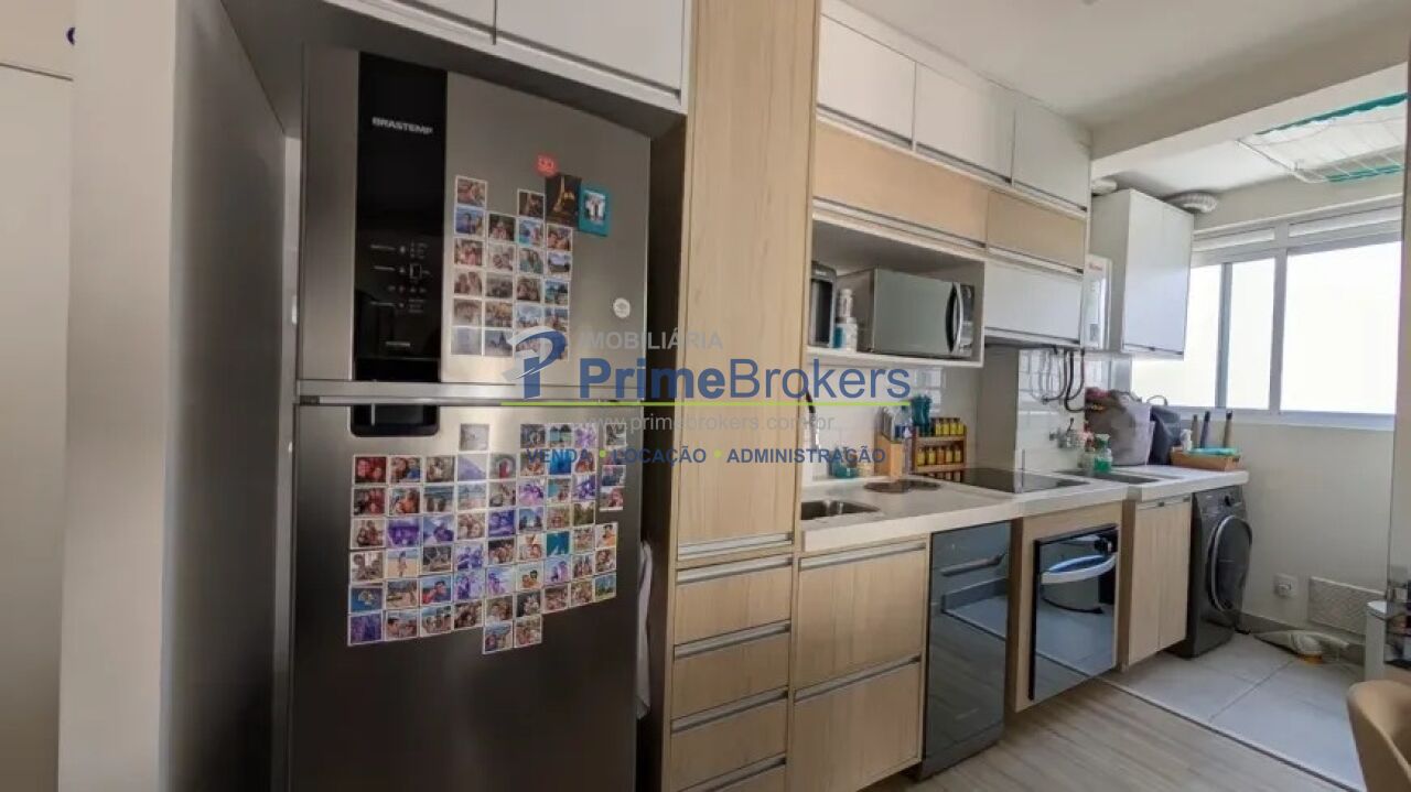 A varanda possui vista para o fundo do prédio, garantindo mais tranquilidade. Cozinha equipada com cooktop de indução, forno, micro-ondas e geladeira, com possibilidade de negociação porteira fechada. Área de serviço otimizada com aquecedor a gás. Banheiros com bancadas de mármore, armários planejados e box de vidro. Dormitório principal com armários, sapateira e mesas de cabeceira. O segundo dormitório está configurado como home office, ideal para trabalho remoto ou uso versátil.