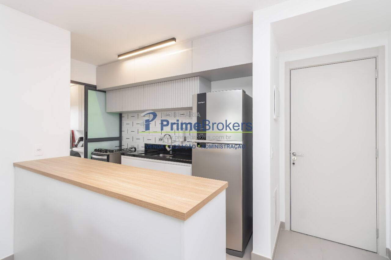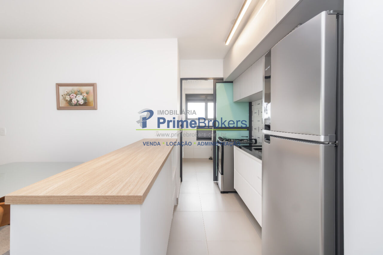 O imóvel conta com 2 dormitórios (sendo 1 suíte) com armários, sala integrada à cozinha em um espaço fluido e uma varanda aconchegante. A cozinha é funcional e possui água quente e gás encanado para total praticidade.