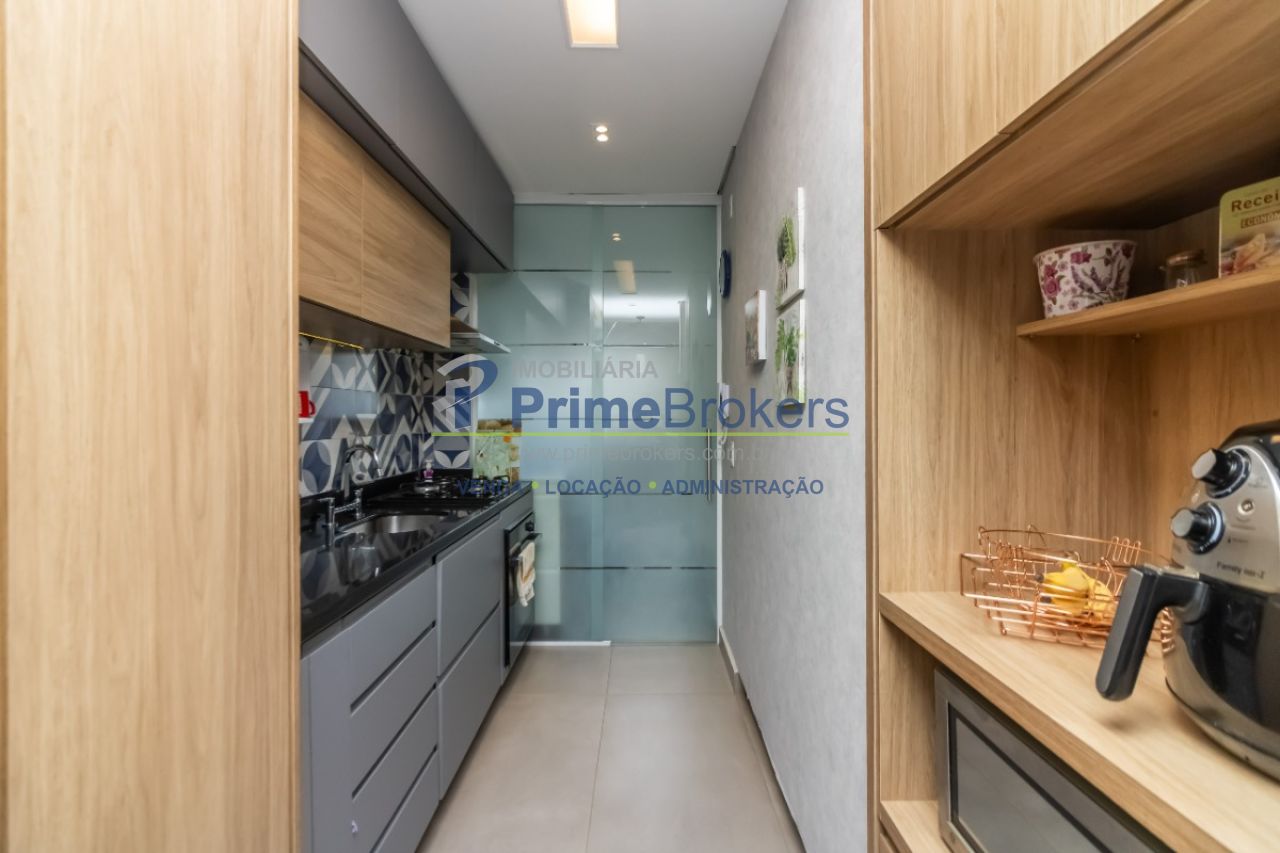 2 dormitórios sendo 1 suíte, Varanda gourmet integrada, Cozinha americana planejada, Armários planejados em todos os ambientes, Ar-condicionado instalado, 2 vagas de garagem cobertas, Área de serviço integrada