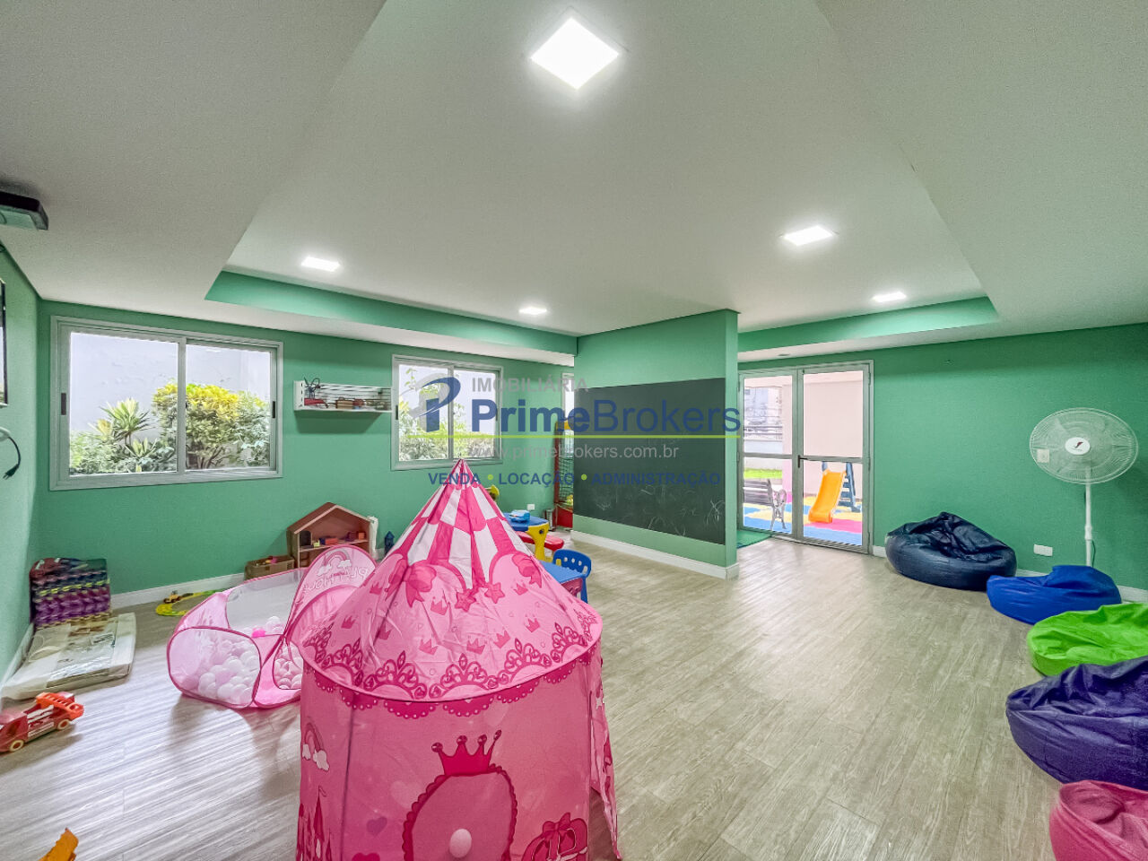 Piscina coletiva, jardim, churrasqueira, salão de festas, espaço fitness, playground, brinquedoteca, portaria presencial 24h, câmeras de segurança, zelador, estacionamento no subsolo, vaga para motos