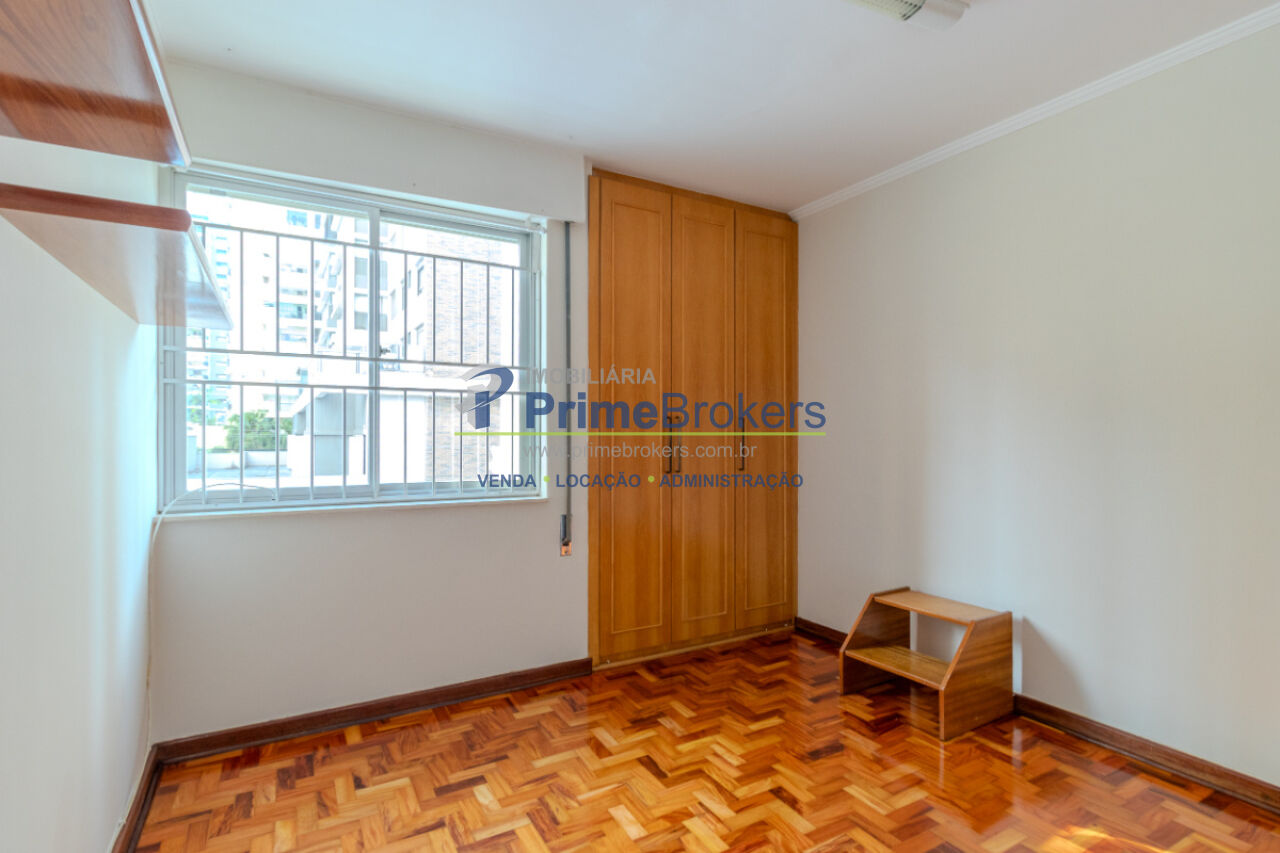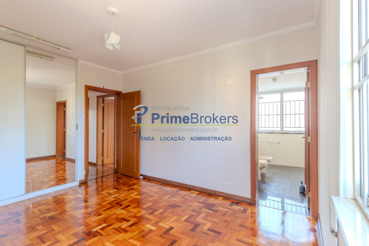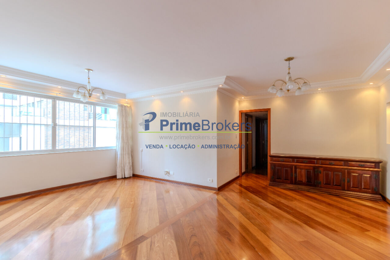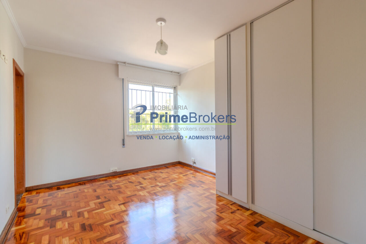Piso de madeira restaurada, 3 dormitórios (1 suíte), vista para área verde, sala 3 ambientes, grandes janelas com persianas, armários embutidos, 2 banheiros, cozinha generosa integrada à área de serviço, quarto de despensa/empregada, terceiro banheiro de serviço, imóvel arejado e iluminado