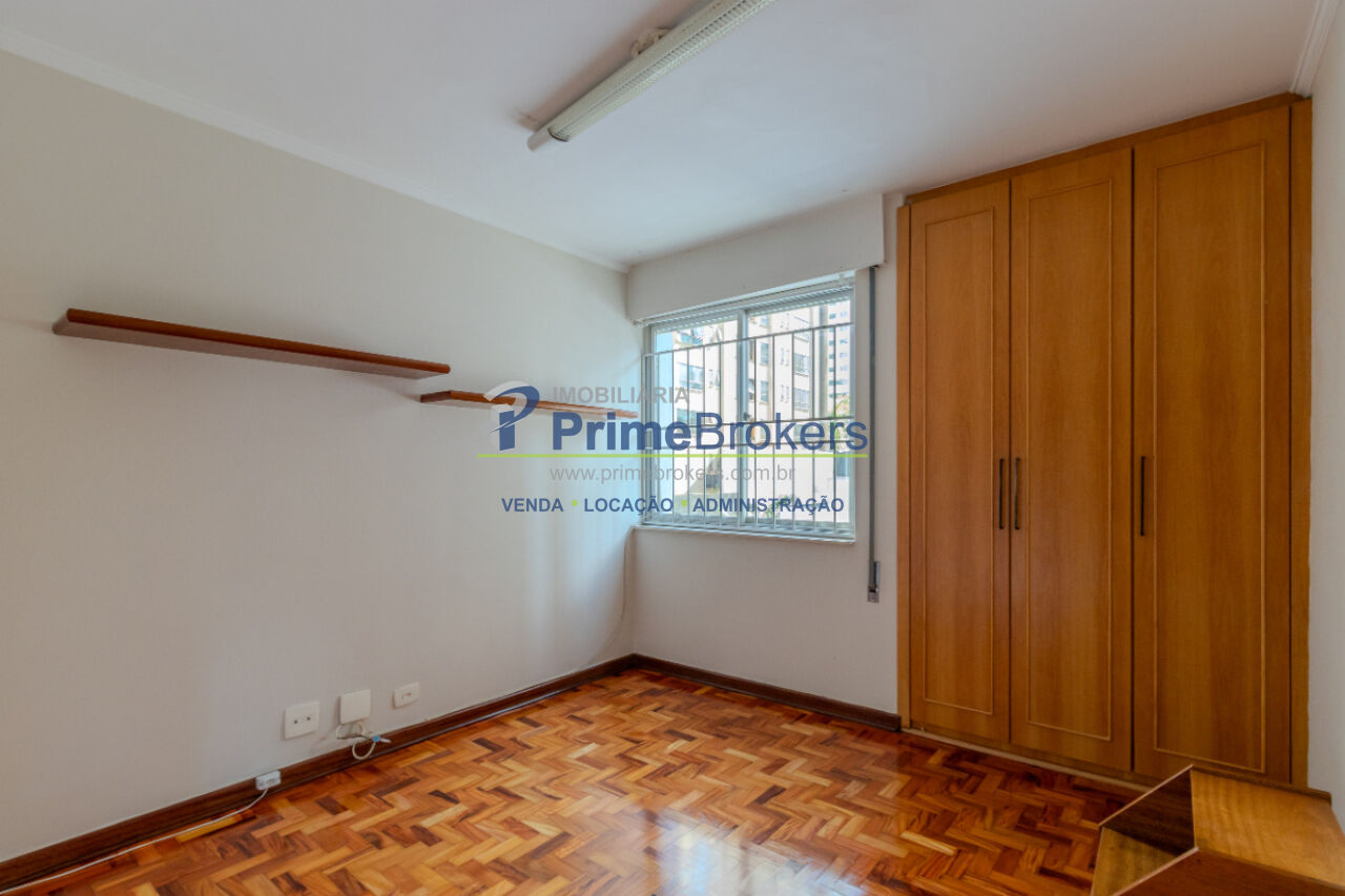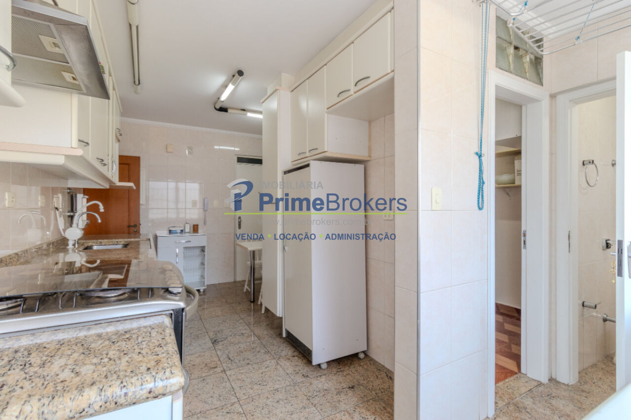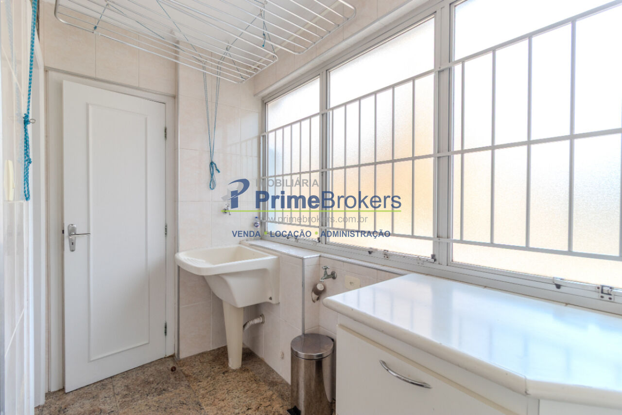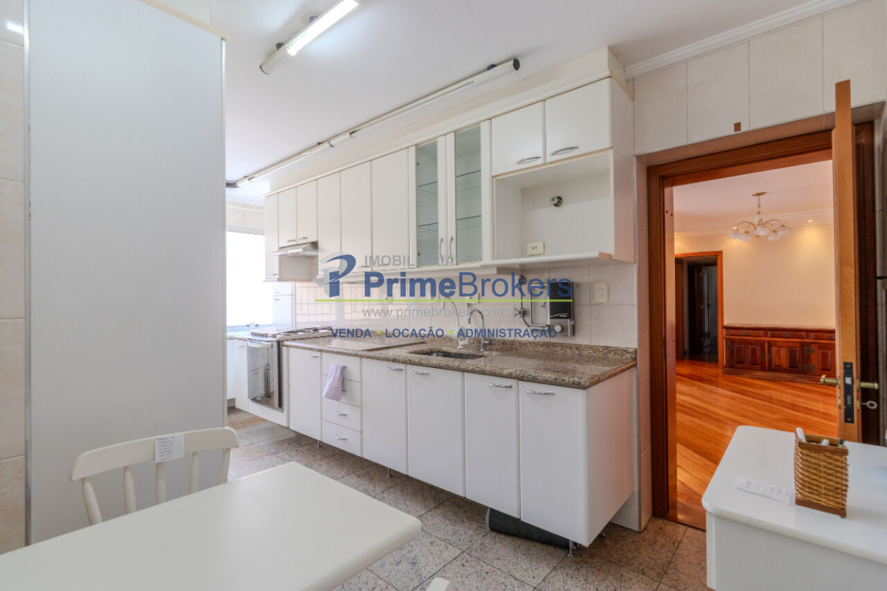 Piso de madeira restaurada, 3 dormitórios (1 suíte), vista para área verde, sala 3 ambientes, grandes janelas com persianas, armários embutidos, 2 banheiros, cozinha generosa integrada à área de serviço, quarto de despensa/empregada, terceiro banheiro de serviço, imóvel arejado e iluminado