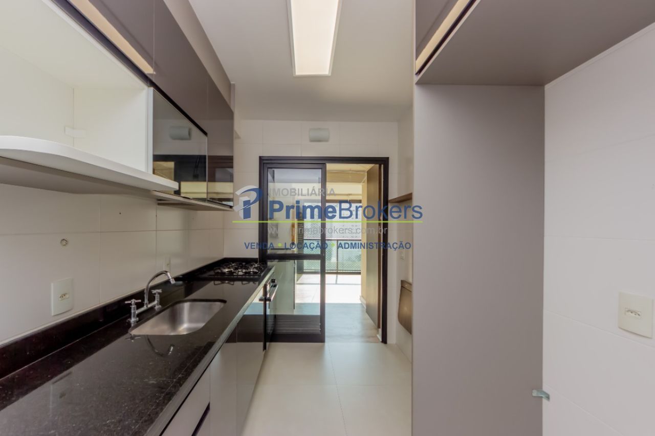 São 3 suítes sendo a master com sacada, living para 2 ambientes, cozinha com armários e fogão, área de serviços, piso laminado, ar condicionado e 2 vagas de garagem com depósito privativo.