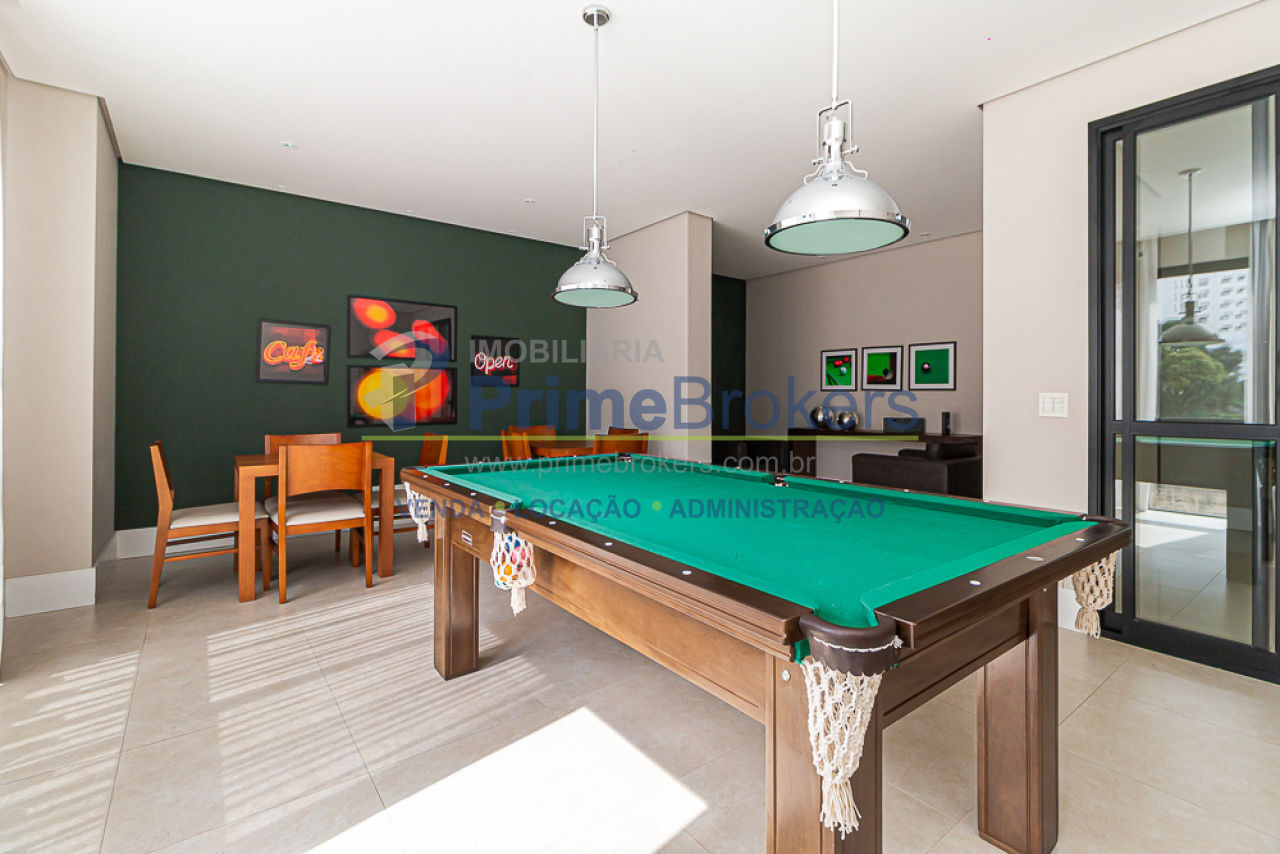 Área de lazer com piscina coberta aquecida, salão de festas, churrasqueira gourmet, forno de pizza, espaço gourmet, salão de jogos, mini market(mercadinho), spa com sauna e descanso, academia, brinquedoteca, playground, mini quadra e bicicletário.