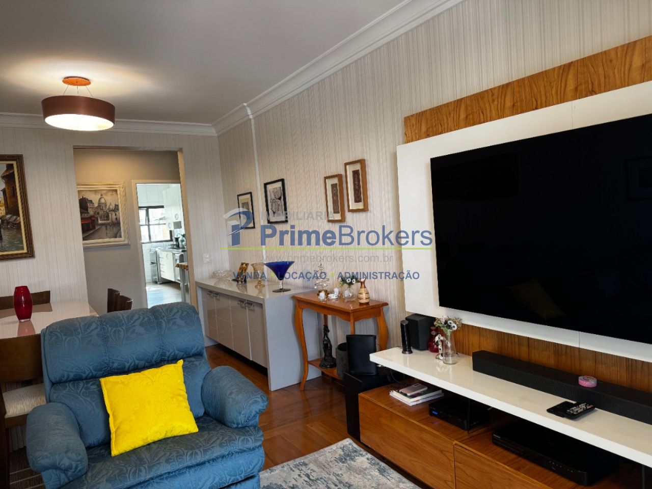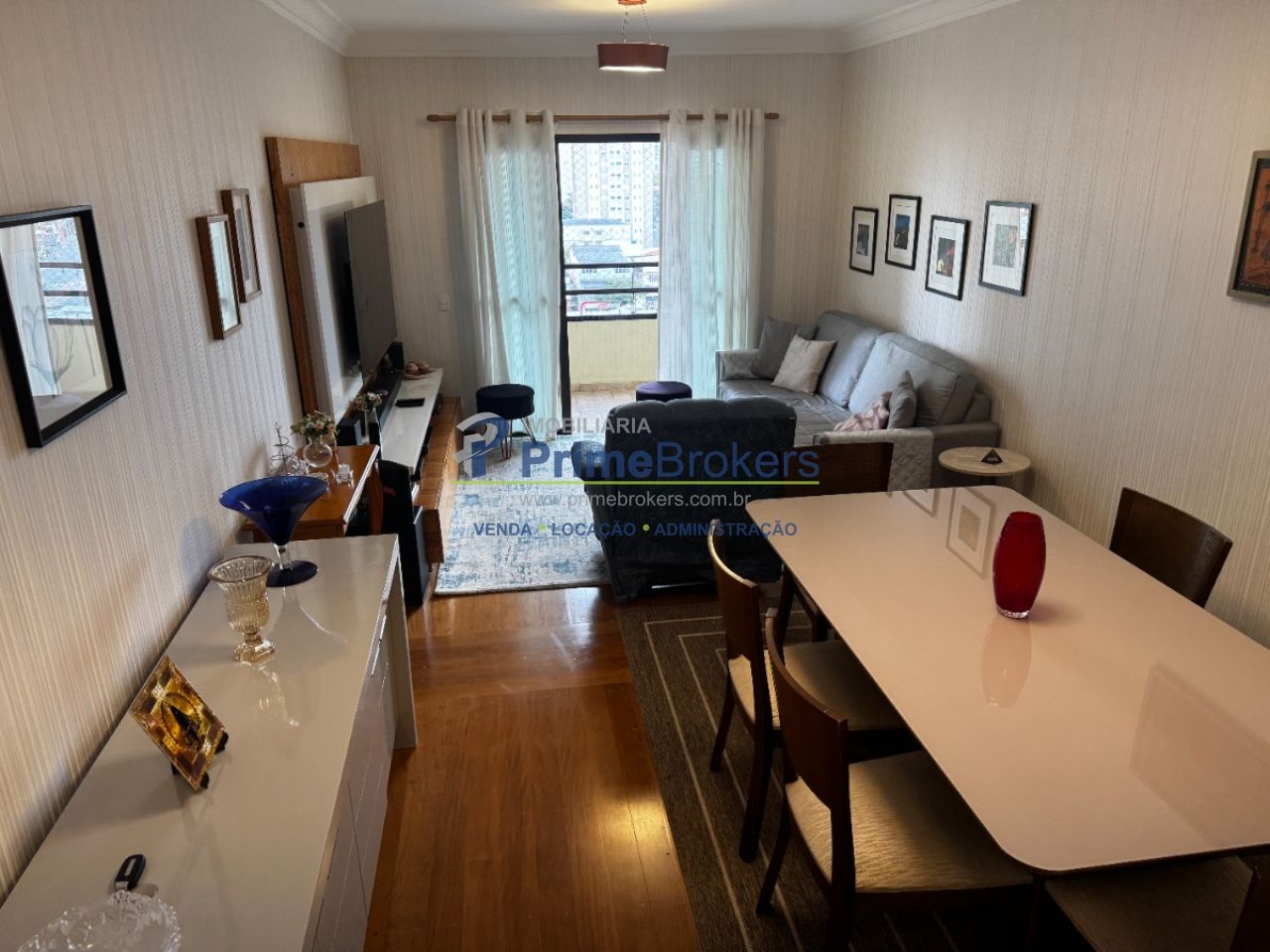 123m², 3 dormitórios sendo 3 suítes, 5 banheiros, sala com varanda, cozinha com despensa, hall privativo, piso de madeira, 2 vagas fixas