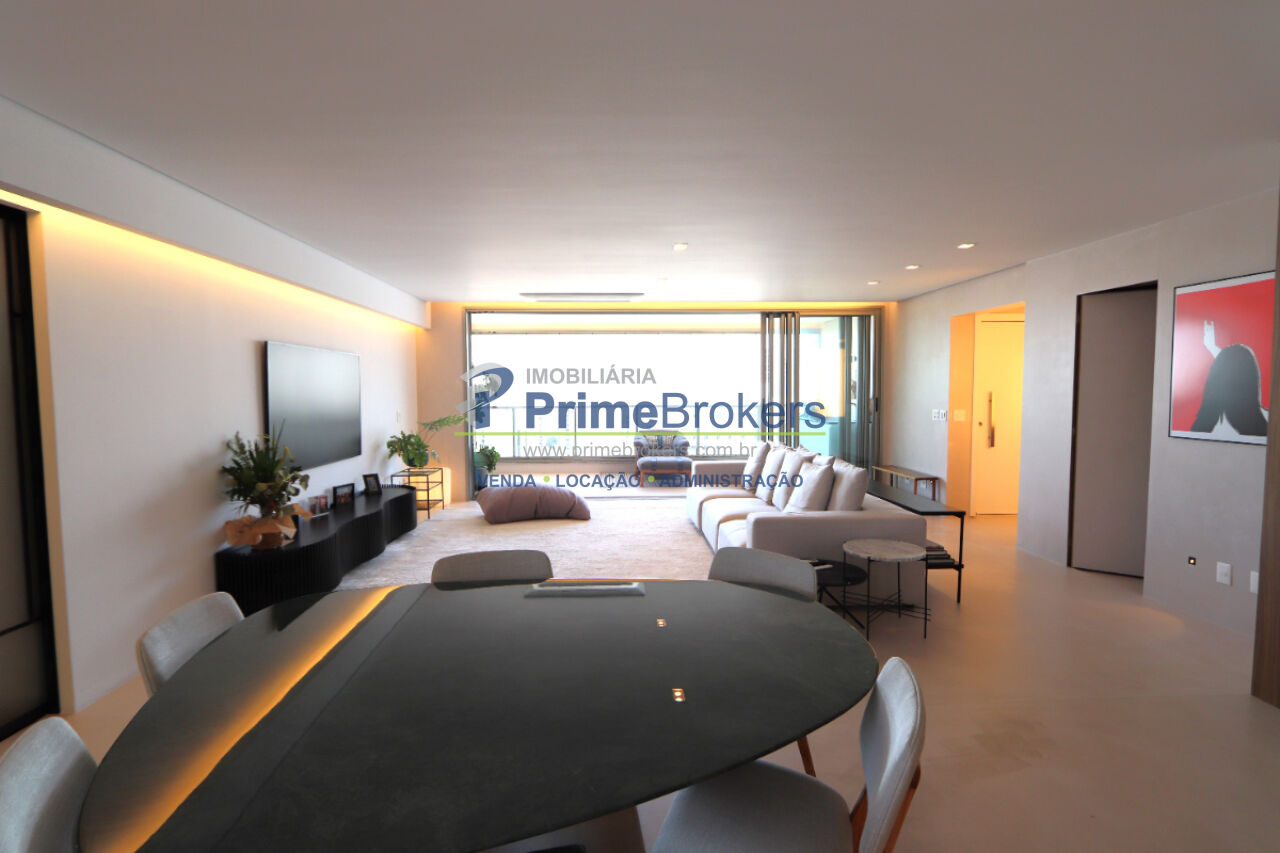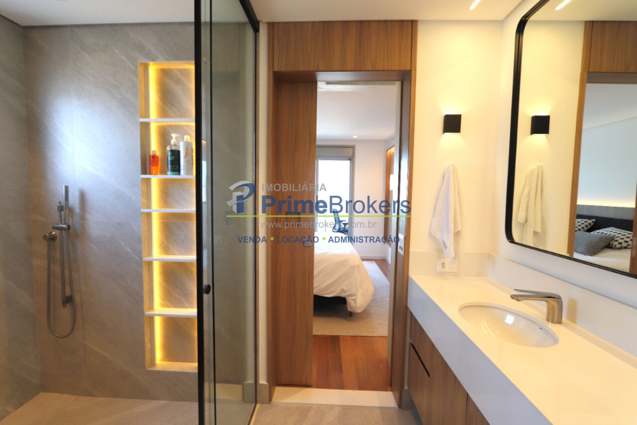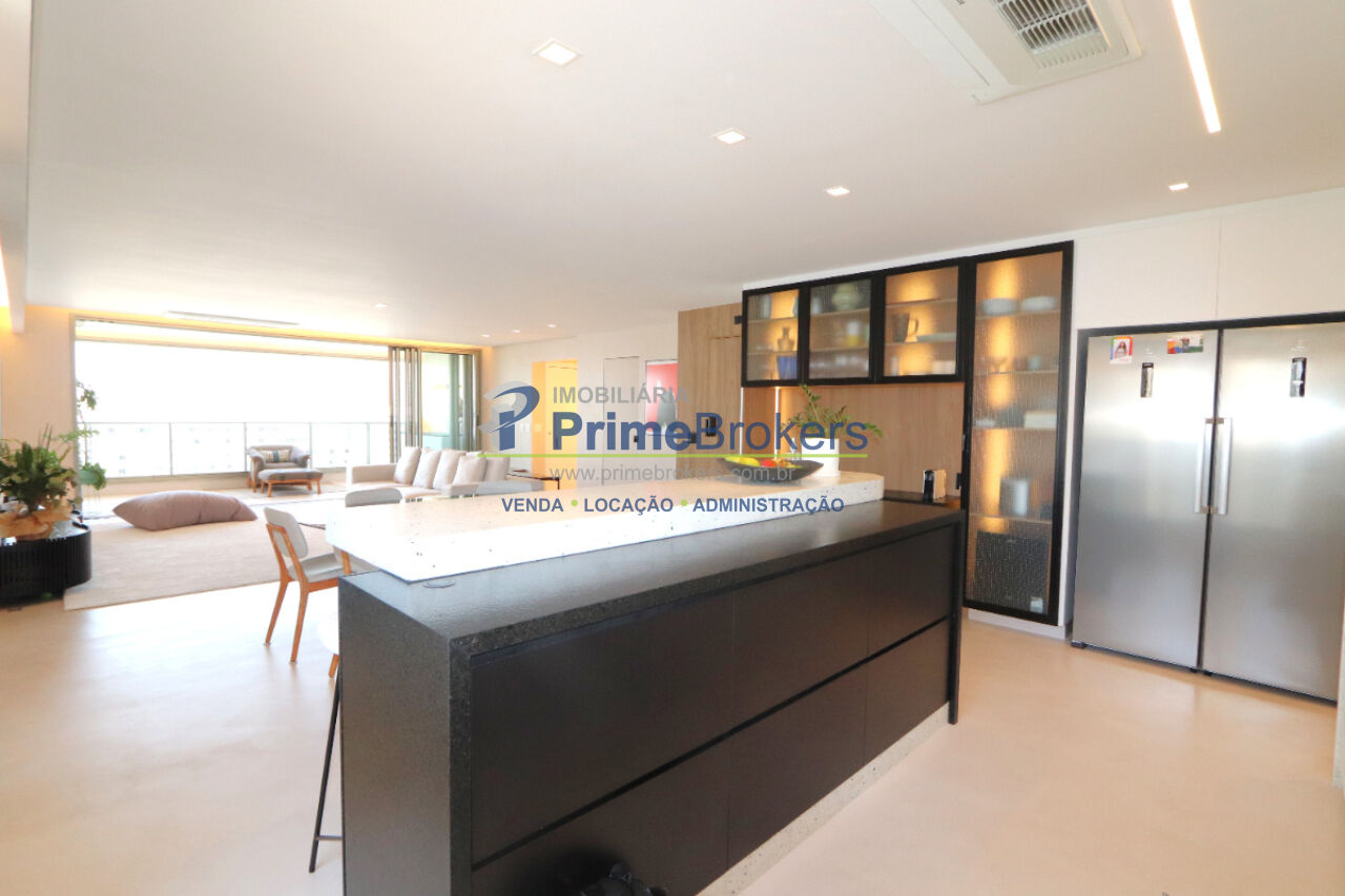 3 dormitórios (3 suítes), 4 banheiros, 3 vagas de garagem, área útil de 181m², varanda, vista permanente, closet, adega climatizada, lavabo, home office, cozinha integrada, ar condicionado central, piso porcelanato e madeira, armários planejados, despensa, depósito, área de serviço, banheiro de serviço, água quente, gás encanado, interfone