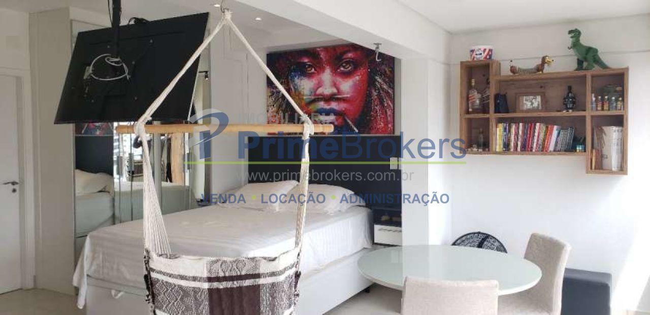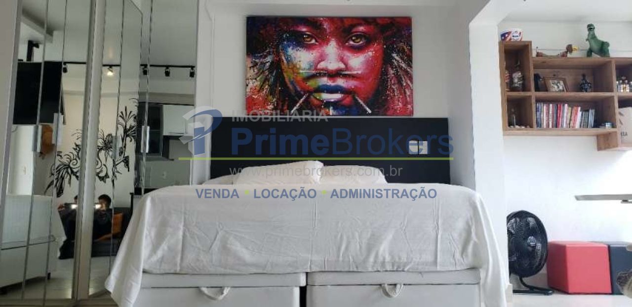 Apartamento de 37 mts² na Vila Mariana, ele está com todos os ambientes conjugados, tem armários embutidos na cozinha, no quarto e banheiro, a varanda está aberta para o apartamento e com fechamento em vidro, para ampliar o ambiente, tem uma vaga de garagem.