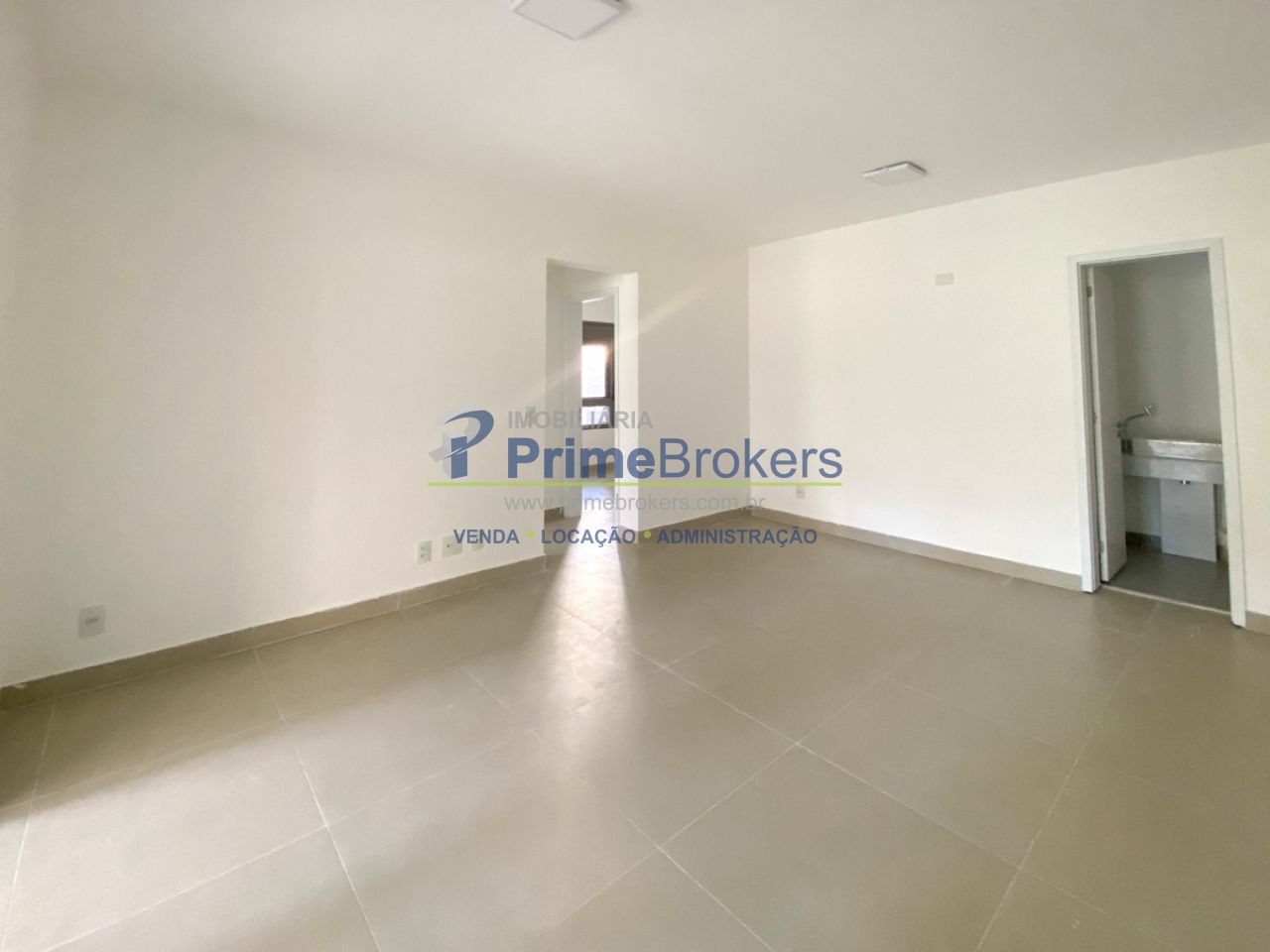 projeto. Acabamentos em porcelanato, linhas retas e tons neutros reforçam a proposta contemporânea. ?
