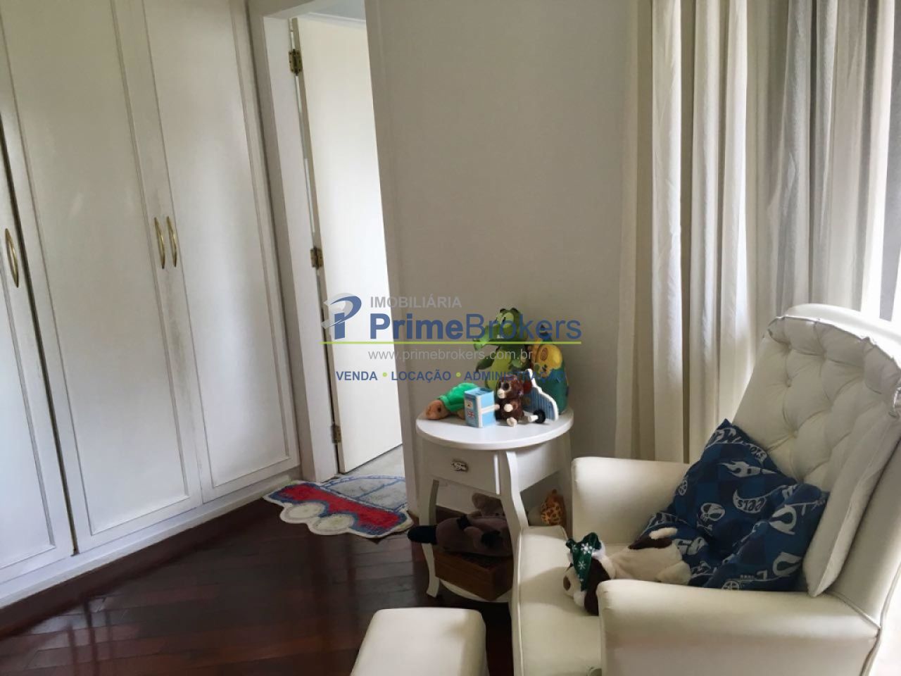 Armários embutidos na cozinha, nos dormitórios com hall com piso de madeira.