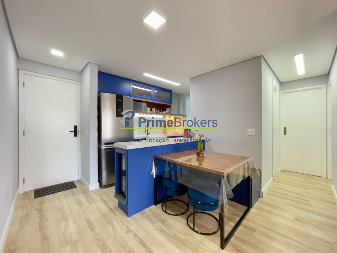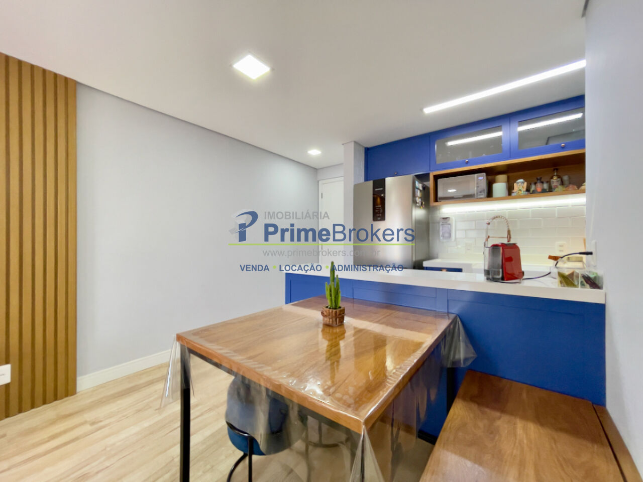 Projeto de marcenaria retrô exclusivo, ar-condicionado inverter, piso vinílico Tarkett, bancada de quartzo, iluminação versátil, suíte, varanda integrada
