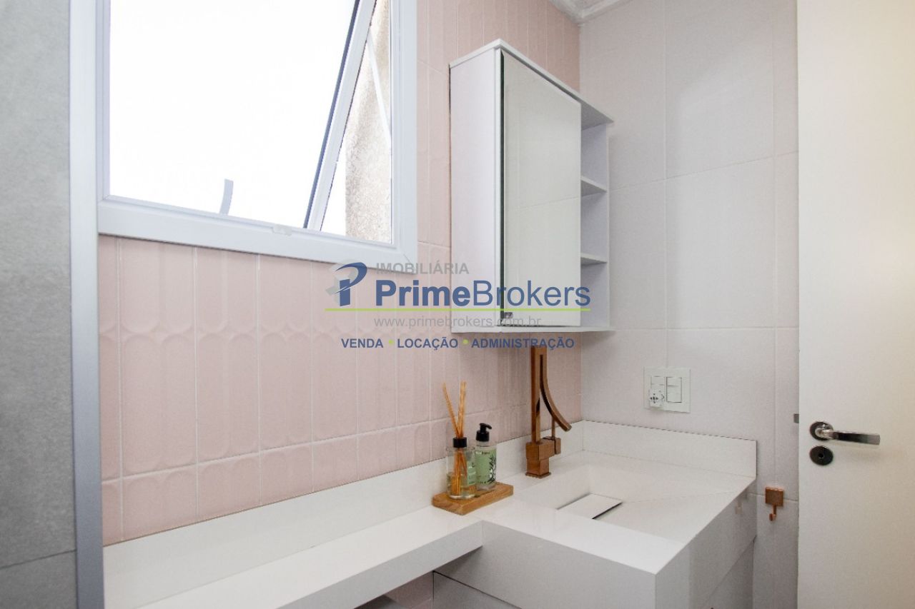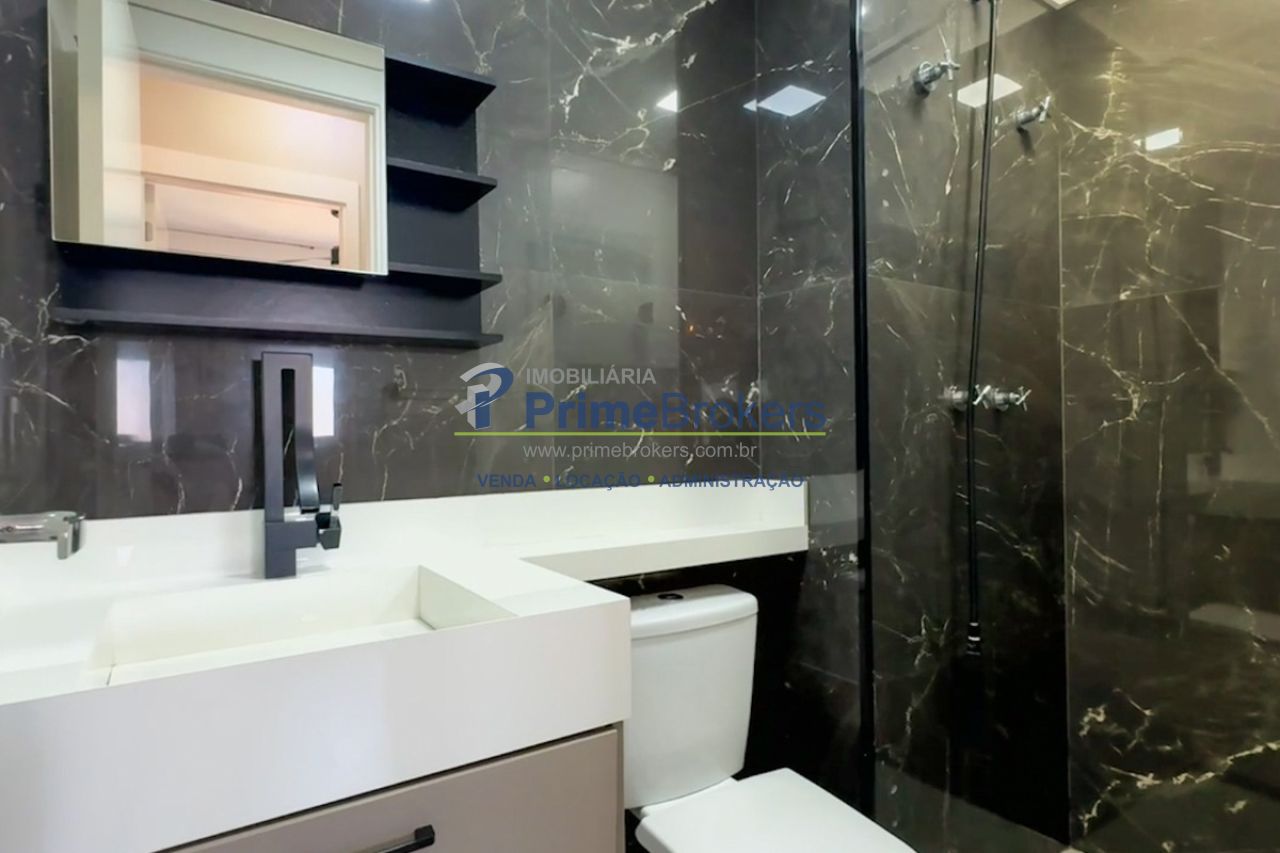 ambientes contam com armários planejados, incluindo quartos, closet, banheiros e cozinha. A cozinha americana