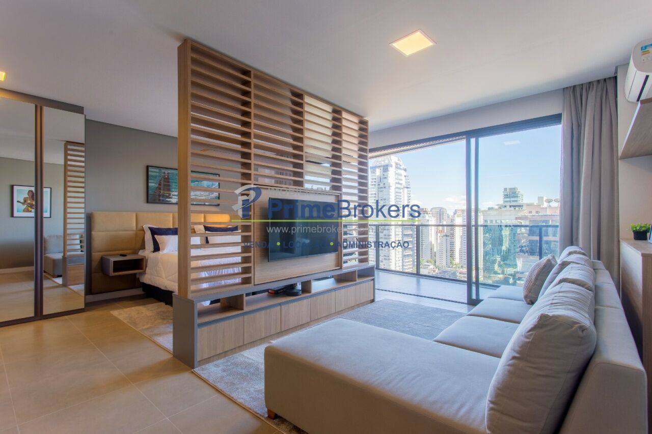 Elegante apartamento de 57m² na Rua Chilon, 184, Vila Olímpia. Totalmente mobiliado, oferece quarto, sala integrada, cozinha planejada, banheiro e varanda ampla. 1 vaga de garagem exclusiva.