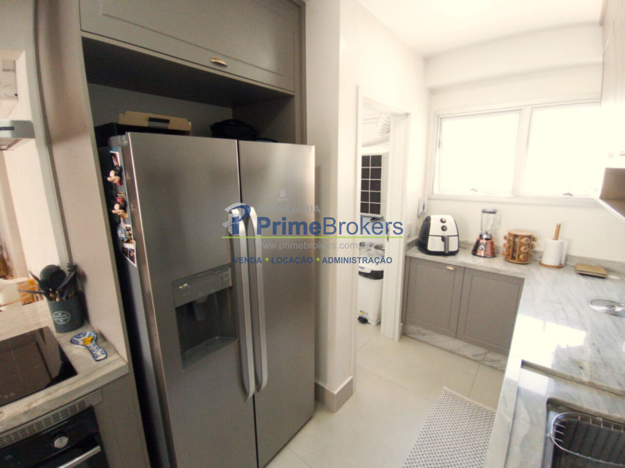 verdadeiro destaque, equipada com uma elegante ilha de cocção em mármore quartzito, que abriga um cooktop, forno e