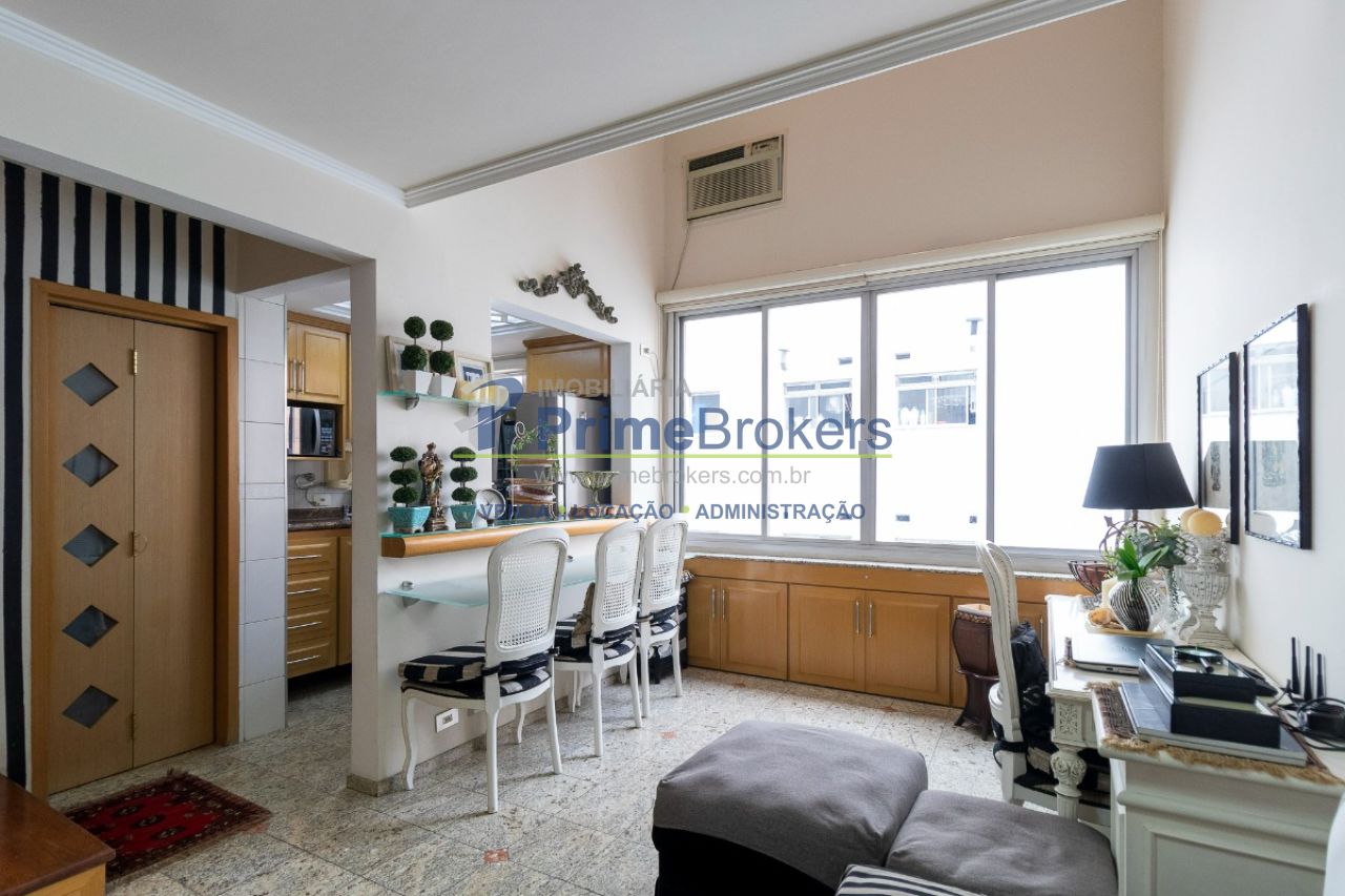 48m², 1 dormitório sendo 1 suíte, 2 banheiros (lavabo), mobiliado, ar-condicionado, água quente, cozinha integrada, interfone, piso porcelanato, infraestrutura para ar-condicionado
