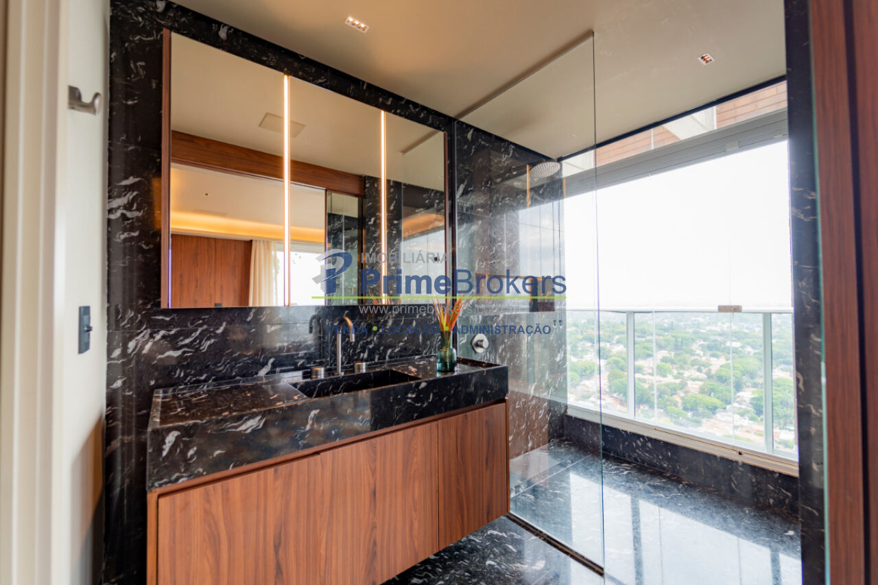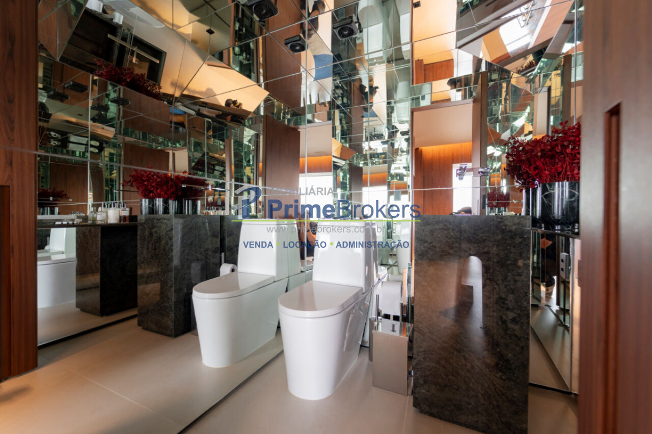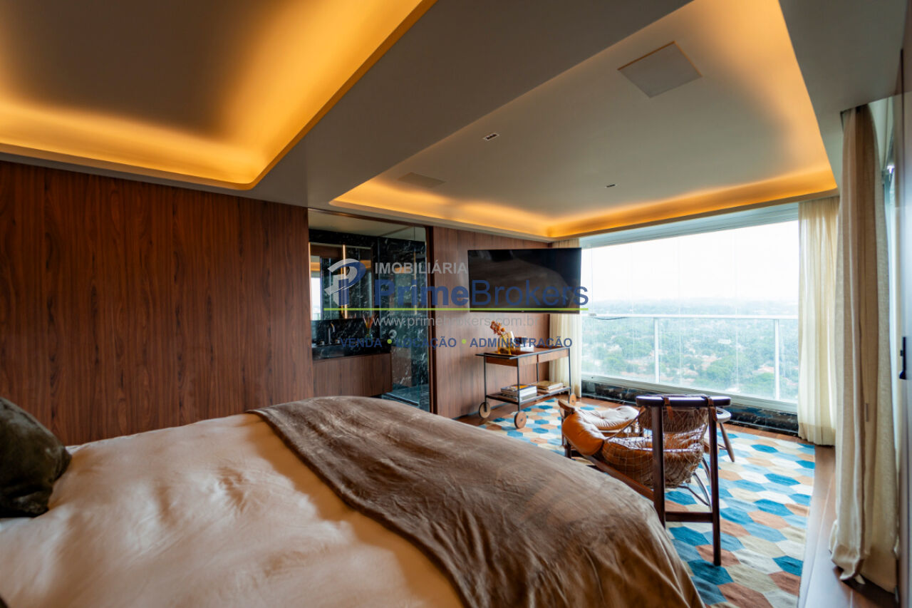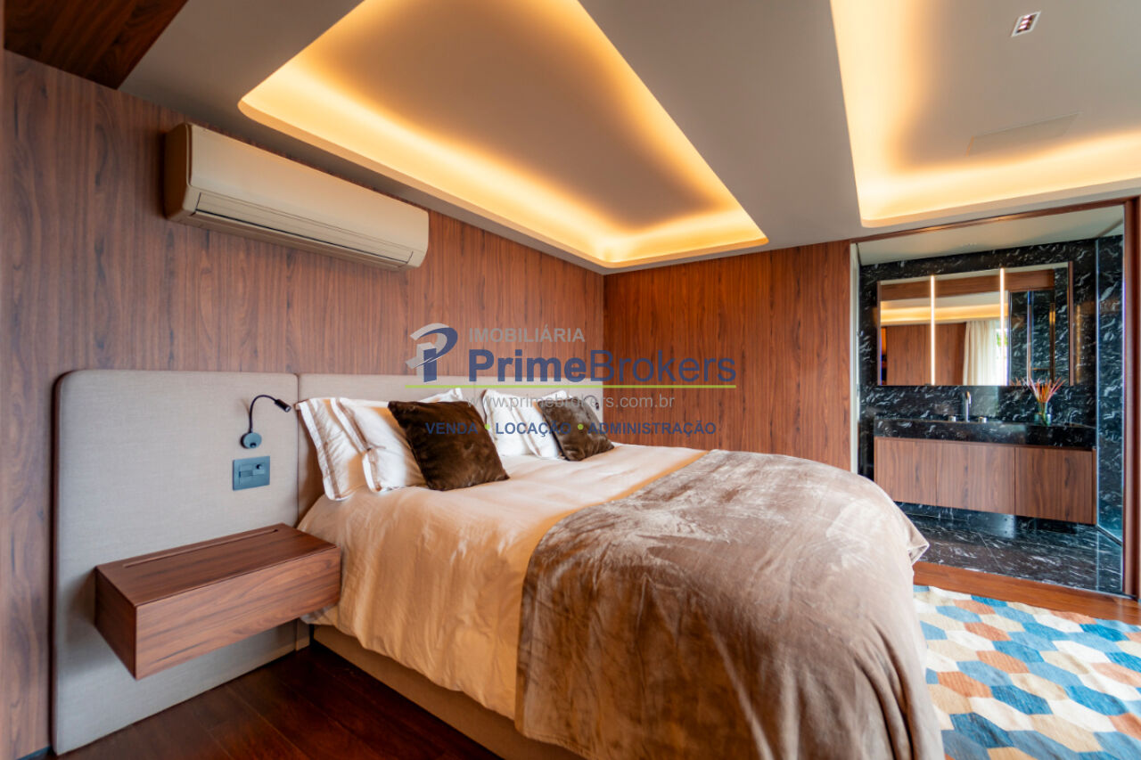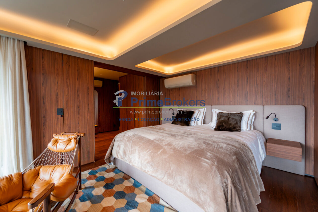 Planta com opção para segundo dormitório, varanda nivelada com vista panorâmica do pôr do sol, automação residencial com Alexa, cozinha Gorenje com geladeira embutida e cooktop, coifa Evol, móveis planejados, ar-condicionado central, pedras nobres, banheiros Sr. e Sra. com ventilação natural