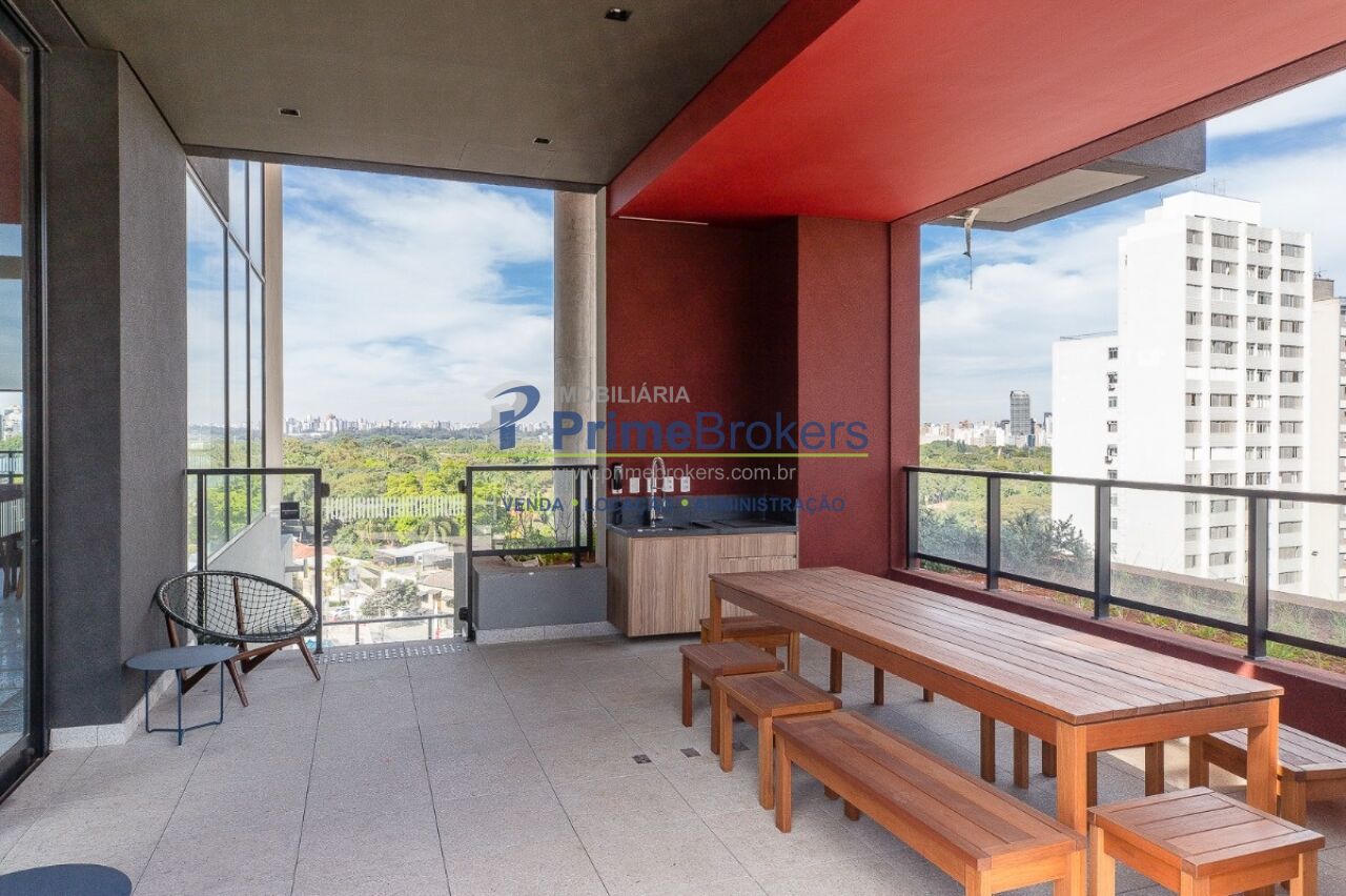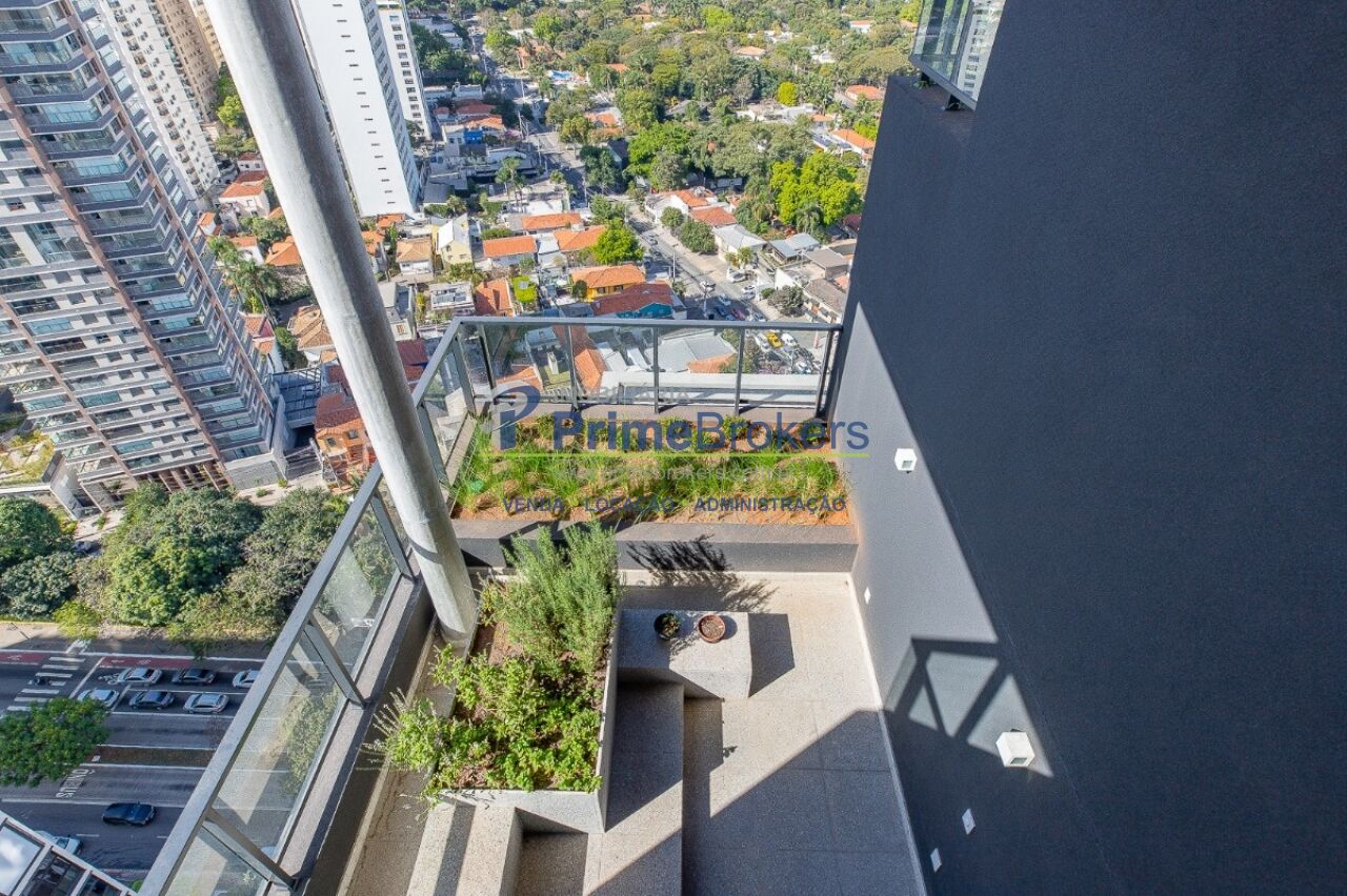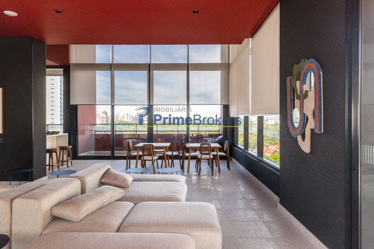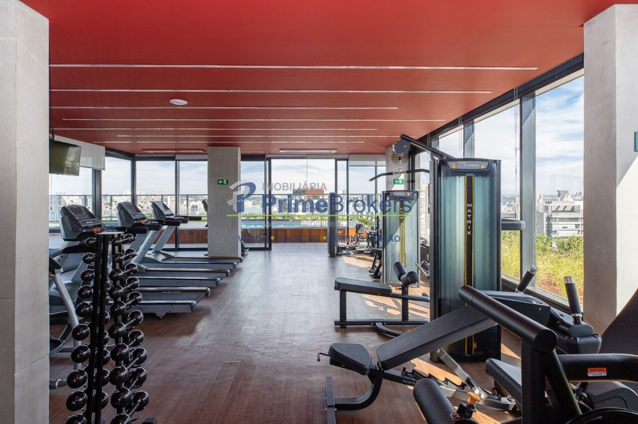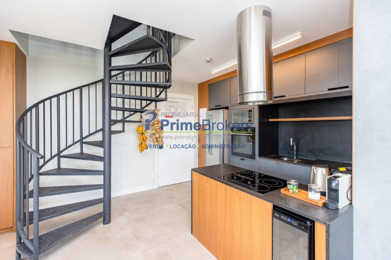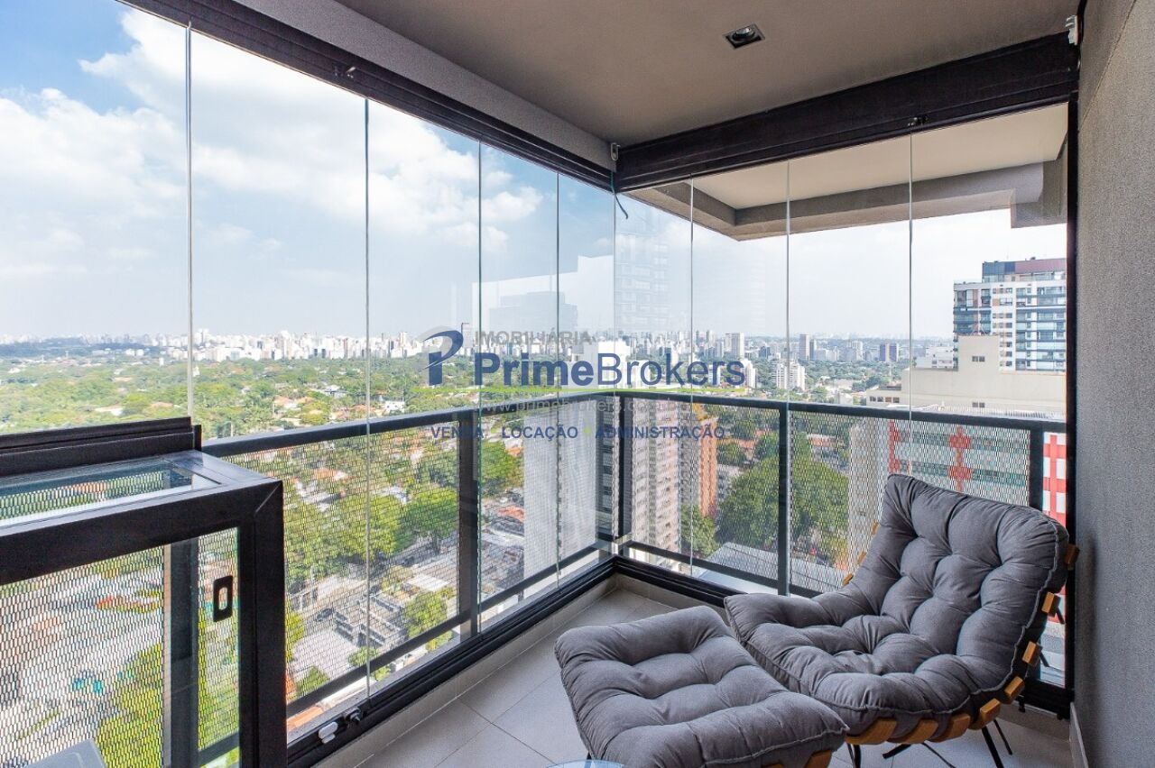 1 suíte com varanda envidraçada e TV retrátil, automação e controle por voz, mobiliado de requinte, cozinha americana completa com ilha e eletrodomésticos, lavabo, armários planejados, ar-condicionado em todos os ambientes, janelas teto-chão com vista para cidade, aquecimento de toalhas, piso de tacos restaurados, fechadura eletrônica, 1 vaga de garagem