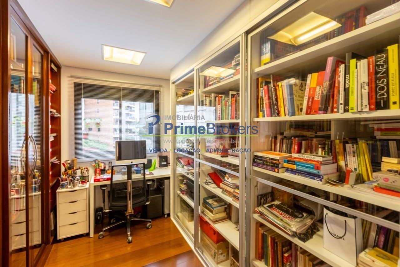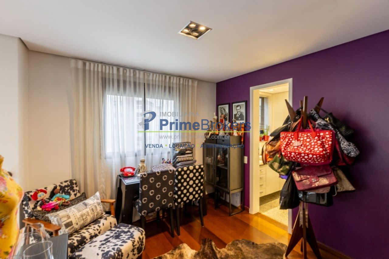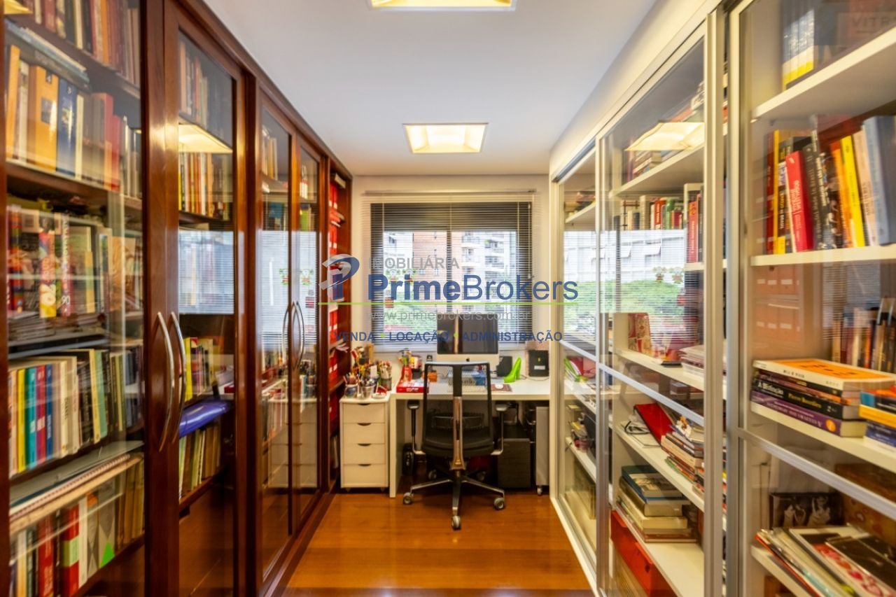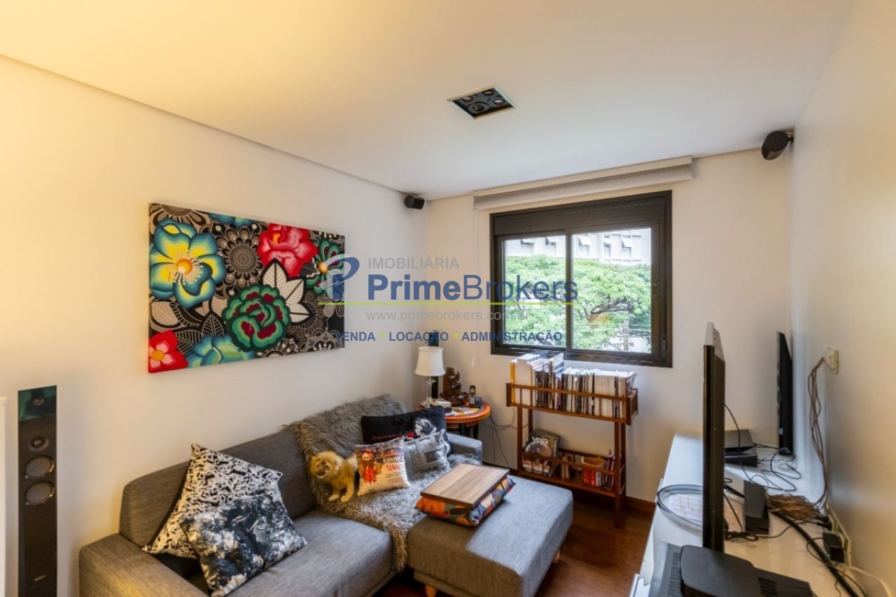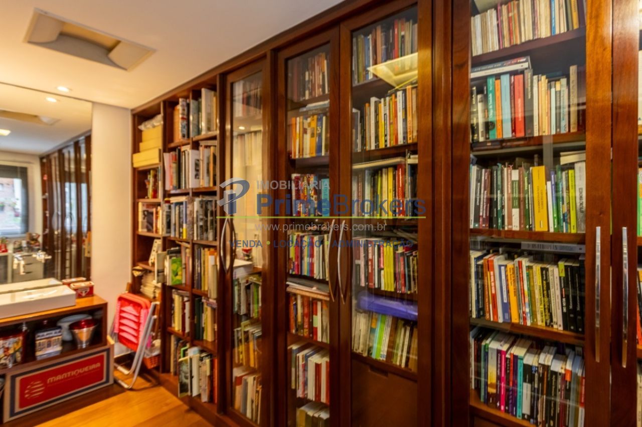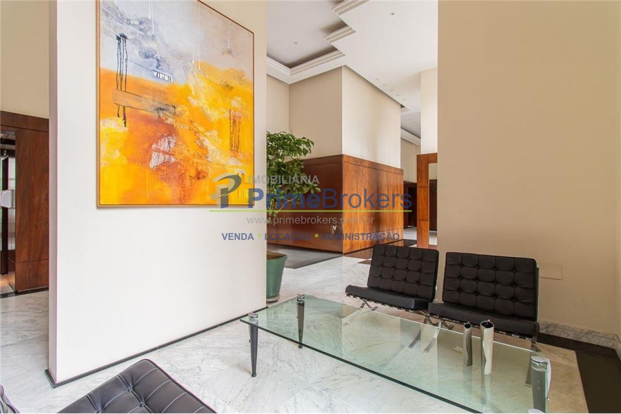 Duplex, living com pé-direito duplo e varanda, sala de TV, sala de jantar, suíte master com sacada, atelier com banheiro privativo, escritório, 2 vagas, depósito
