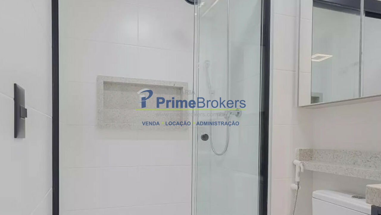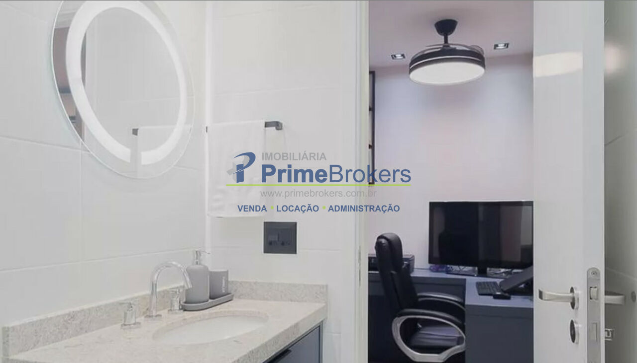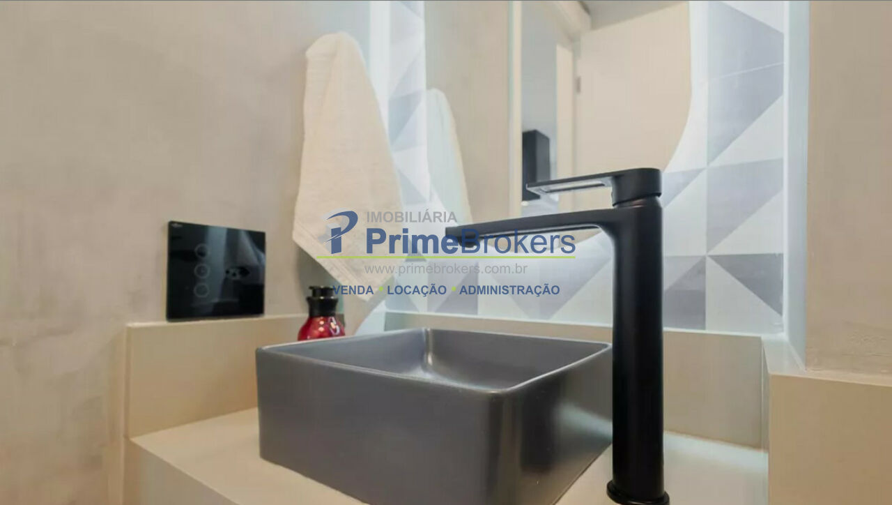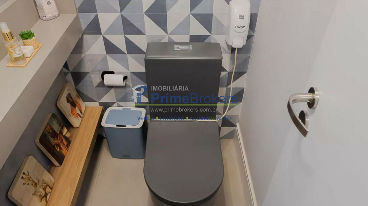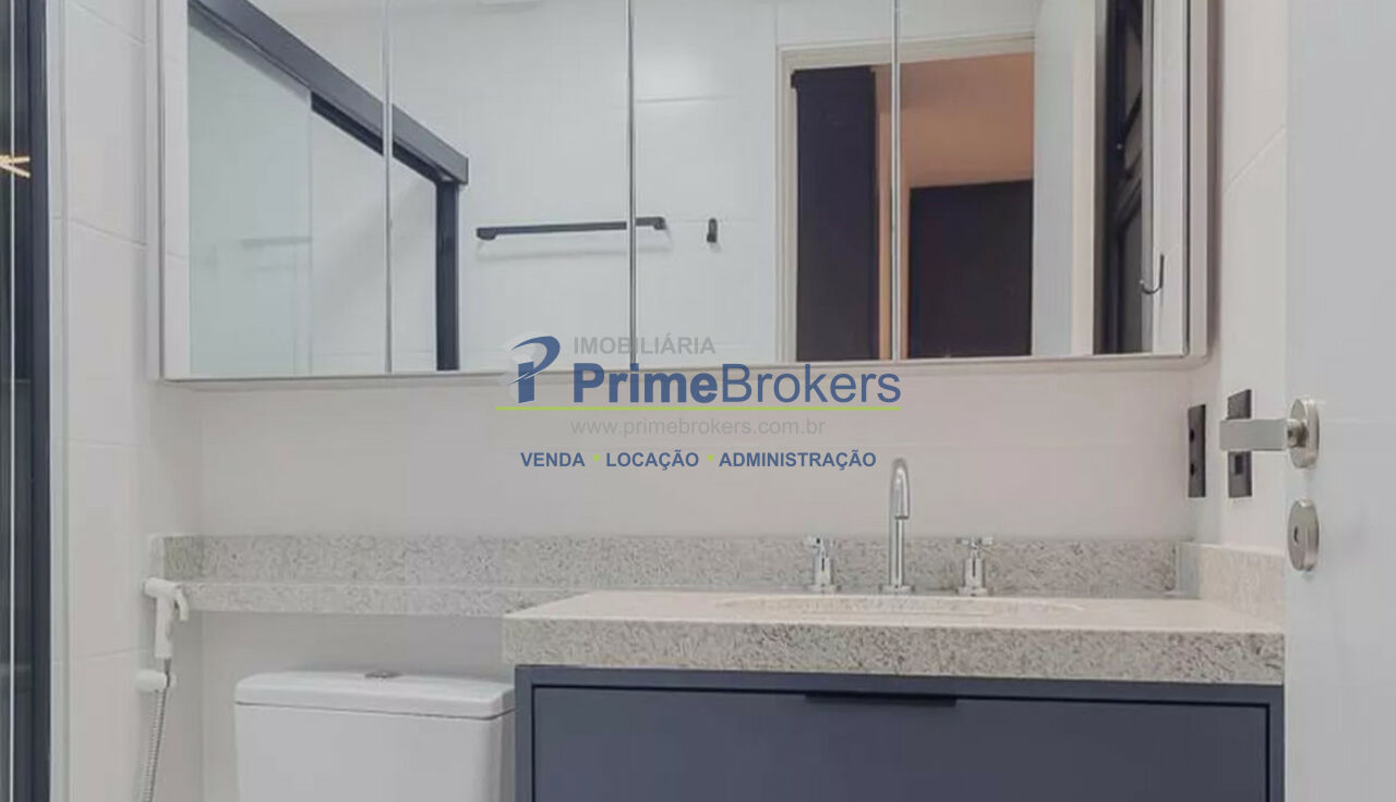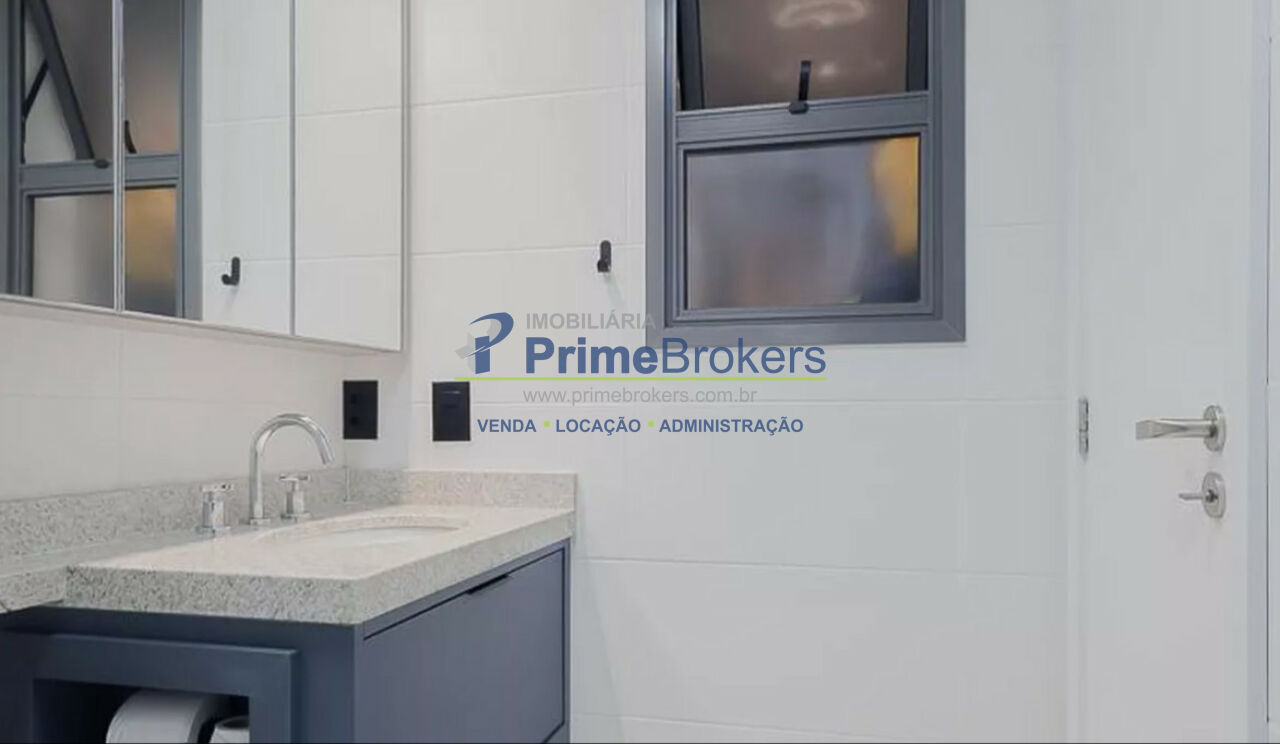 São 2 banheiros e 1 lavabo, e o apartamento é entregue totalmente mobiliado e equipado com eletrodomésticos de alto padrão.
