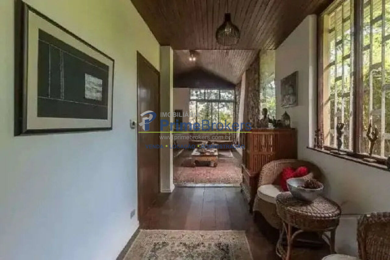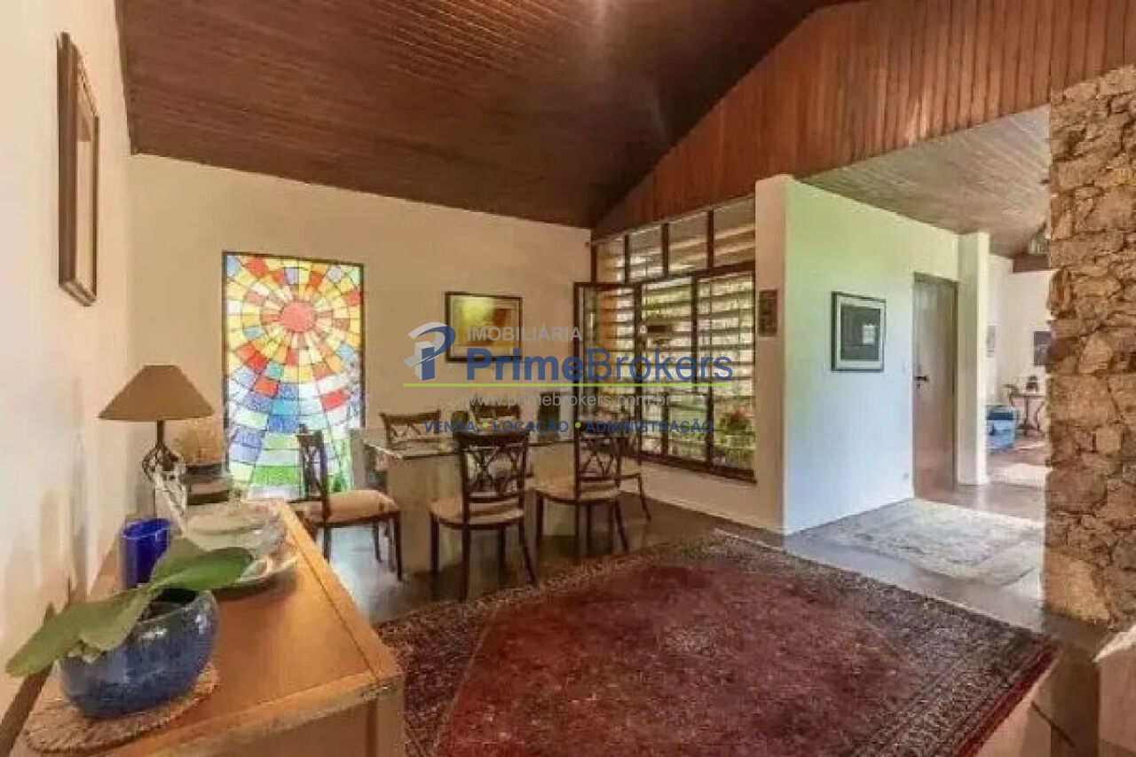 O imóvel é envolto por um belíssimo jardim, proporcionando um ambiente fresco e contato direto com a natureza. A área social é composta por salas amplas e integradas: uma aconchegante sala de lareira com bar privativo, perfeita para noites de inverno, e uma elegante sala de jantar próxima à cozinha.
