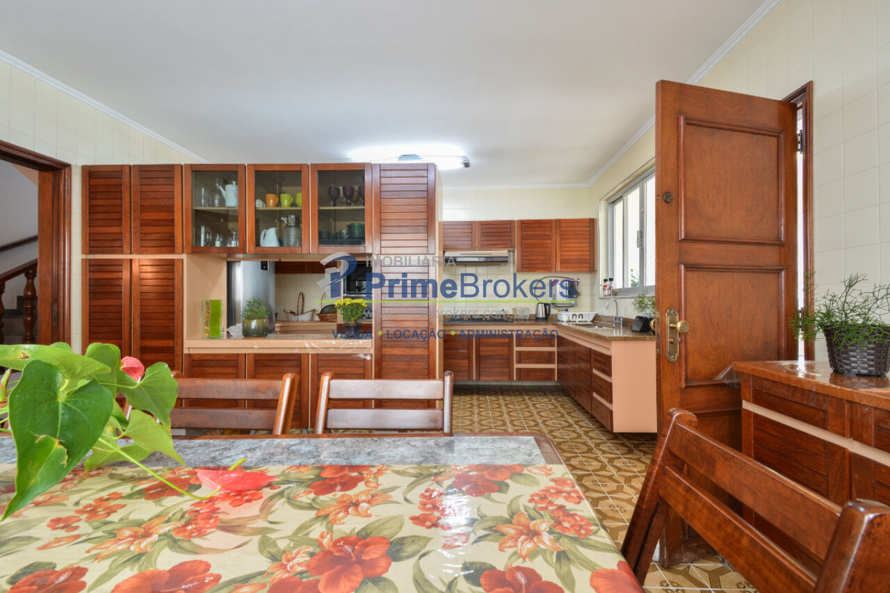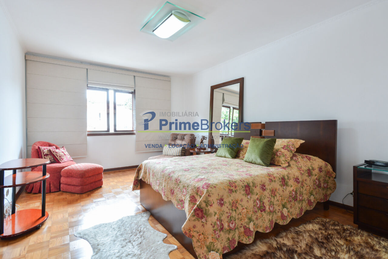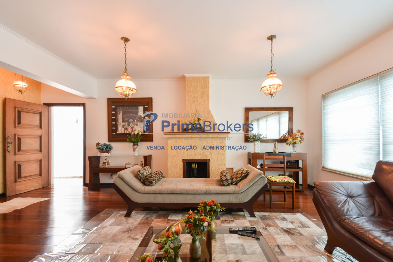 349m² terreno, 229m² úteis, 3 dormitórios, 1 suíte master com closet, 7 vagas, lareira, churrasqueira, jardim, garagem conversível em salão de festas com bar e 5 banheiros, copa, despensa, móveis planejados, piso de madeira, alarme, interfone, gás encanado, dependência de funcionário, locação não aceita pet