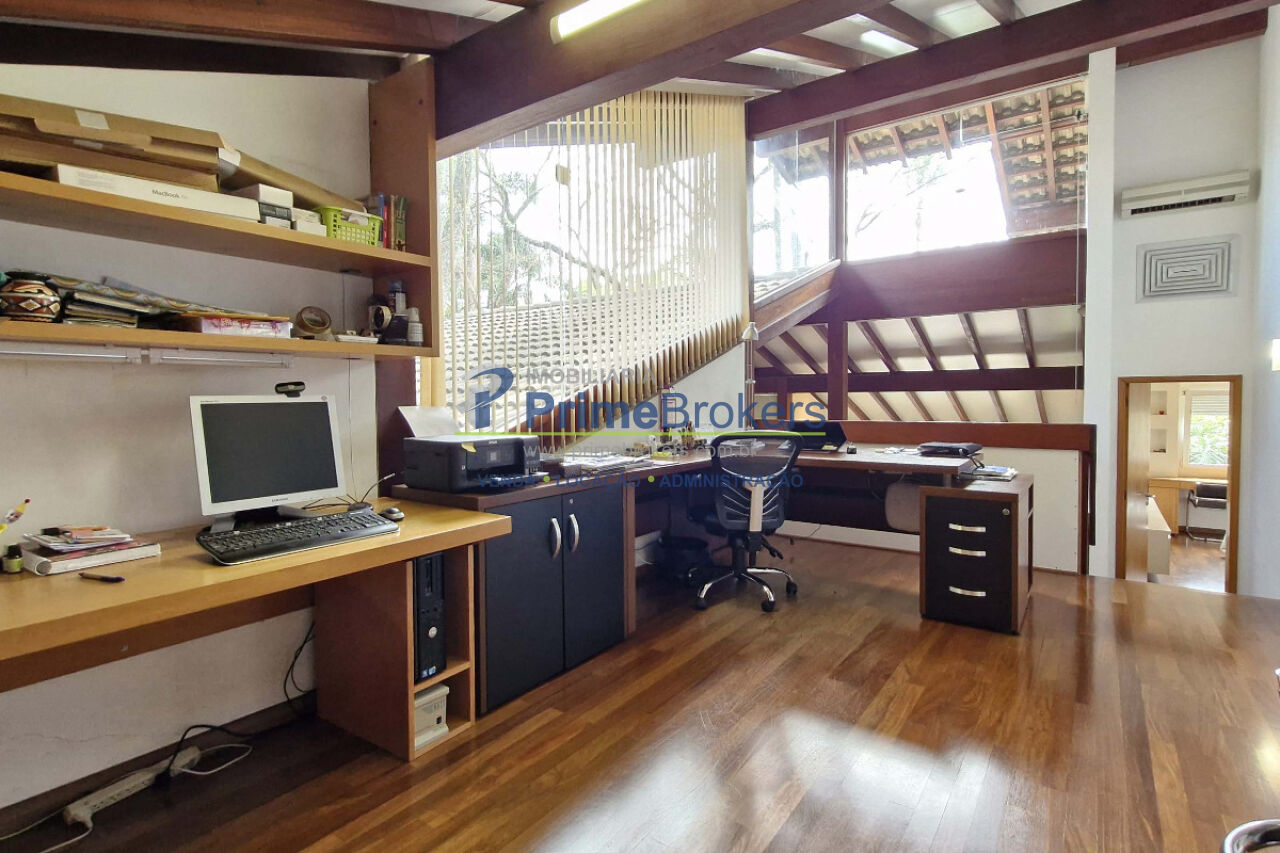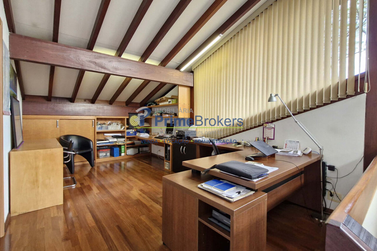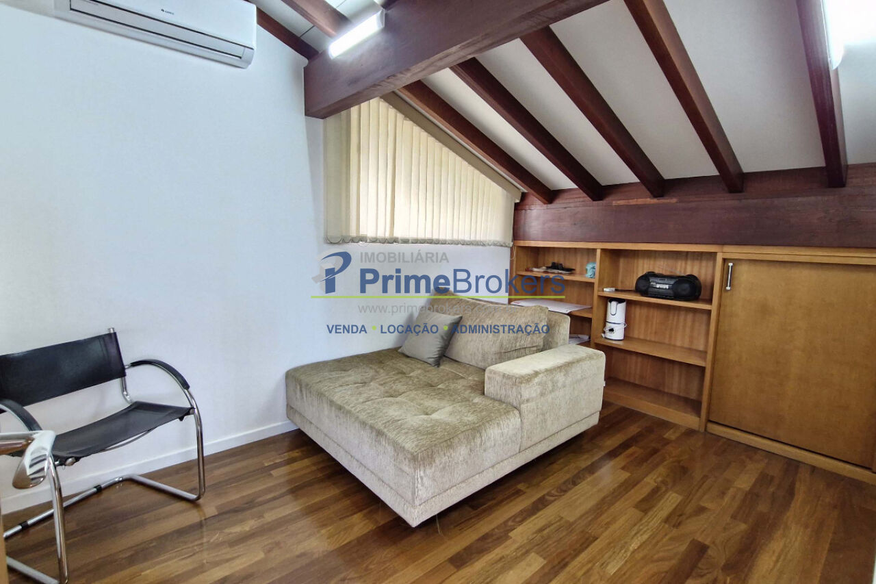 acústica com persiana motorizada. No mezanino, há um espaço ideal para escritório ou home office. A área externa é um