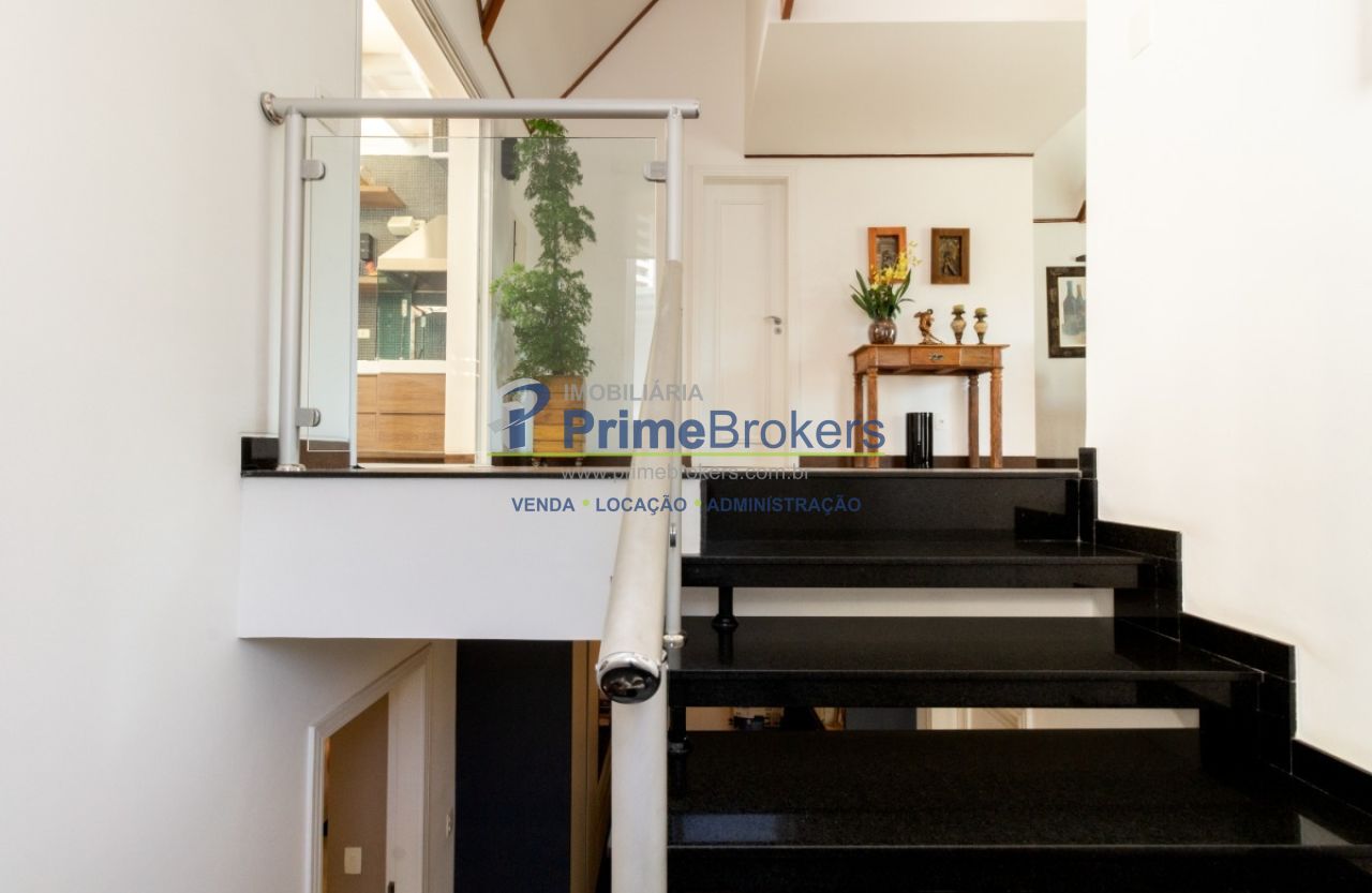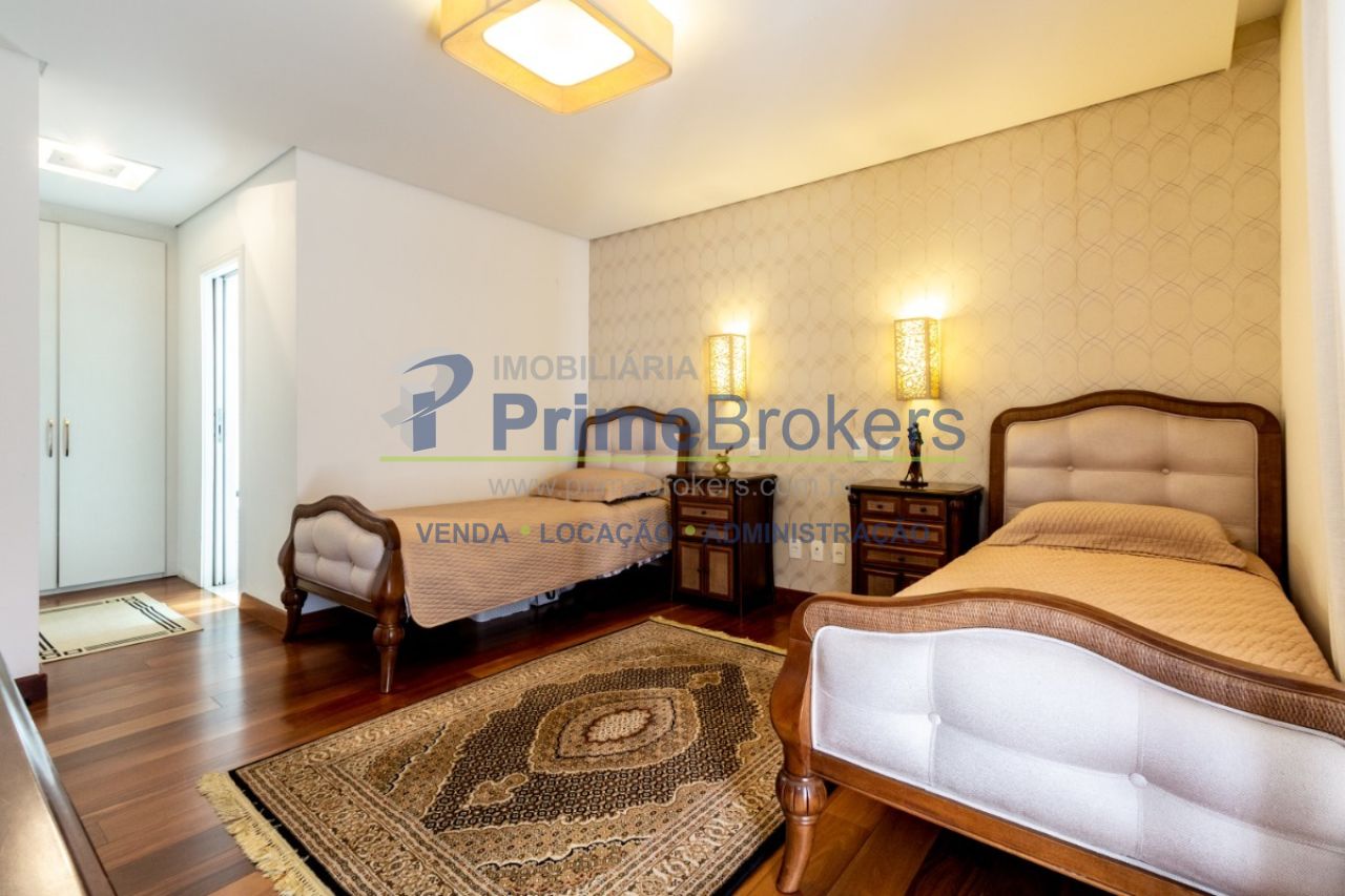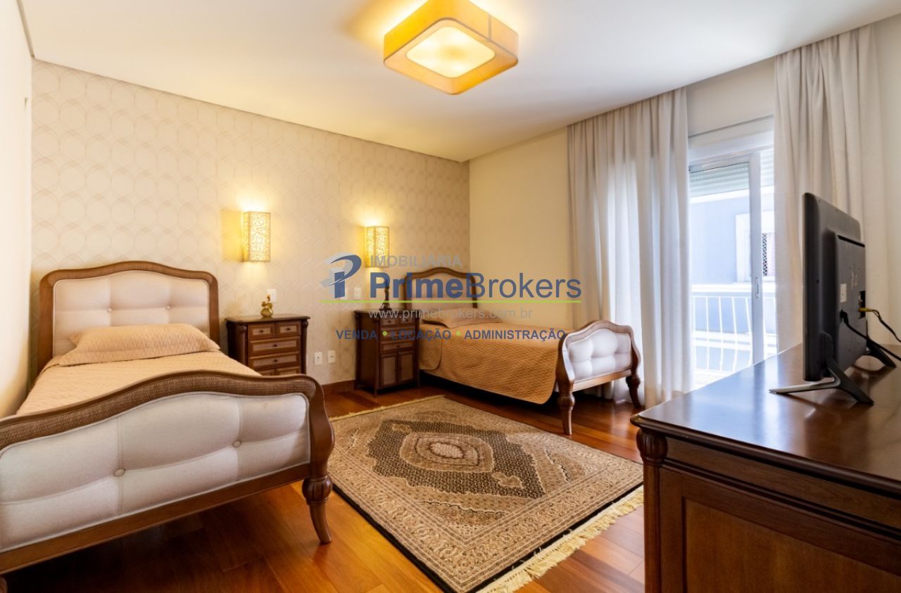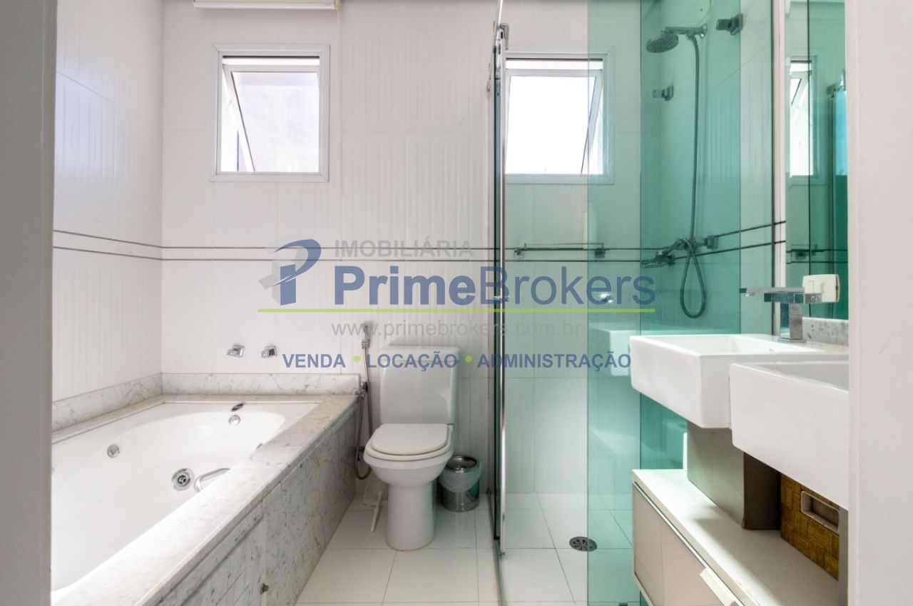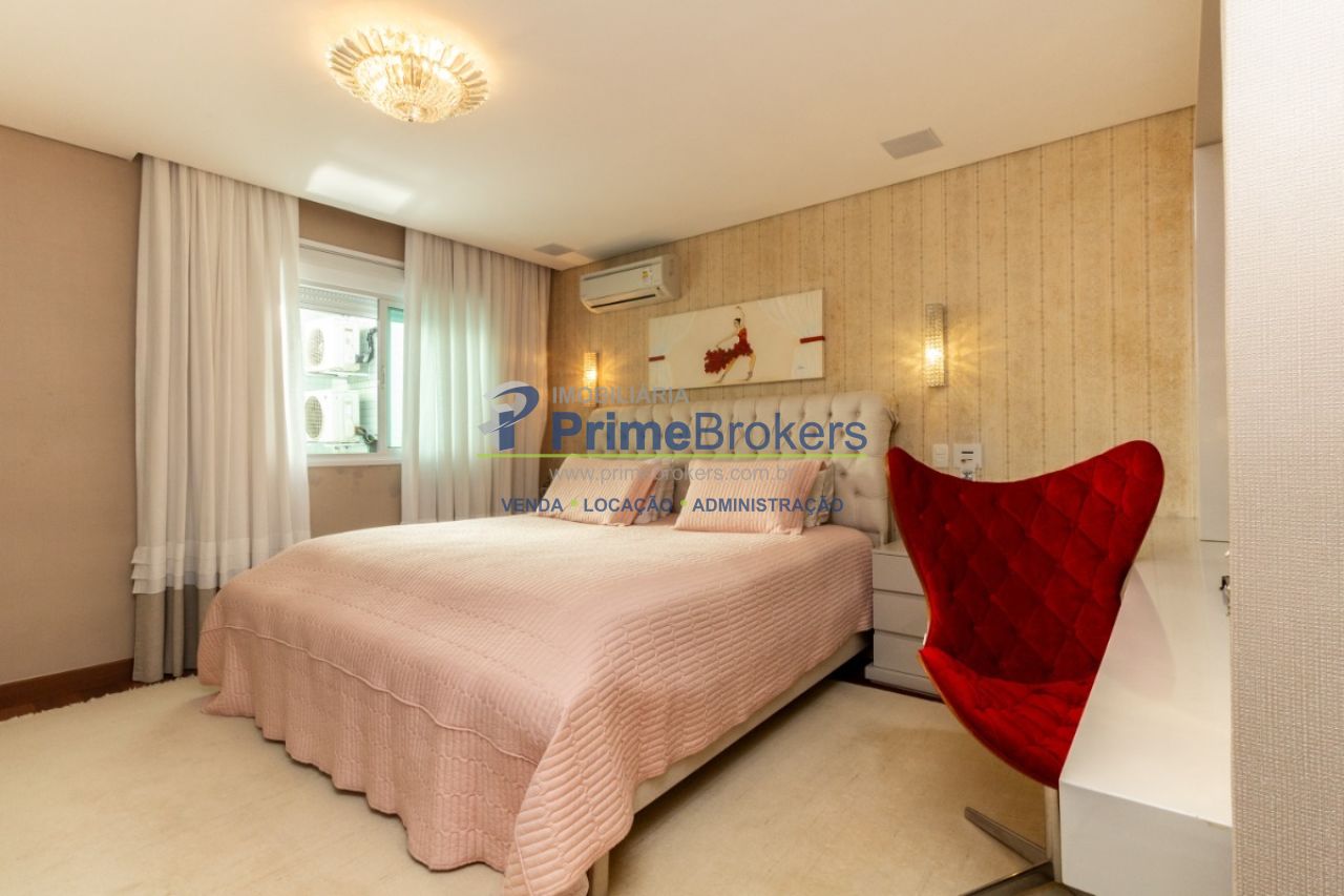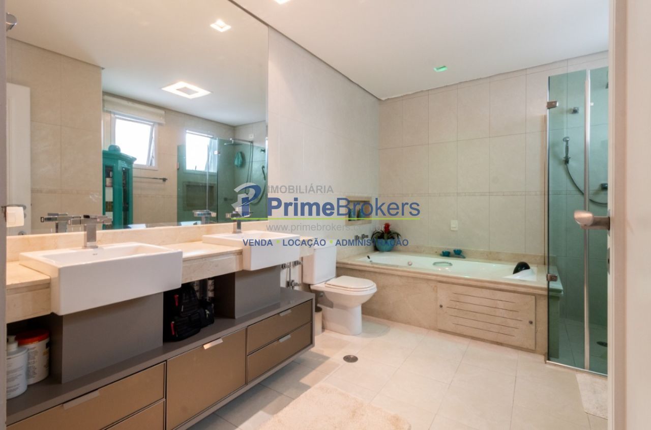2 suítes master com hidromassagem, espaço gourmet com jacuzzi e churrasqueira, sala cinema, sala de TV com varanda, ofurô, 4 vagas de garagem, 5 banheiros, ar-condicionado, móveis planejados, mobiliado, alarme, água quente, piso de madeira, sacada, copa, depósito, infraestrutura para ar-condicionado, interfone, banheiro de serviço
